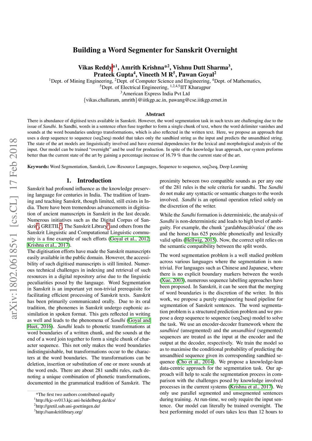There is an abundance of digitised texts available in Sanskrit. However, the word segmentation task in such texts are challenging due to the issue of 'Sandhi'. In Sandhi, words in a sentence often fuse together to form a single chunk of text, where the word delimiter vanishes and sounds at the word boundaries undergo transformations, which is also reflected in the written text. Here, we propose an approach that uses a deep sequence to sequence (seq2seq) model that takes only the sandhied string as the input and predicts the unsandhied string. The state of the art models are linguistically involved and have external dependencies for the lexical and morphological analysis of the input. Our model can be trained "overnight" and be used for production. In spite of the knowledge lean approach, our system preforms better than the current state of the art by gaining a percentage increase of 16.79 % than the current state of the art.