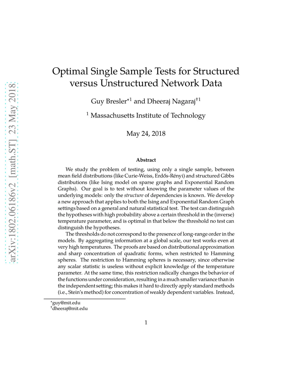 Optimal Single Sample Tests for Structured versus Unstructured Network