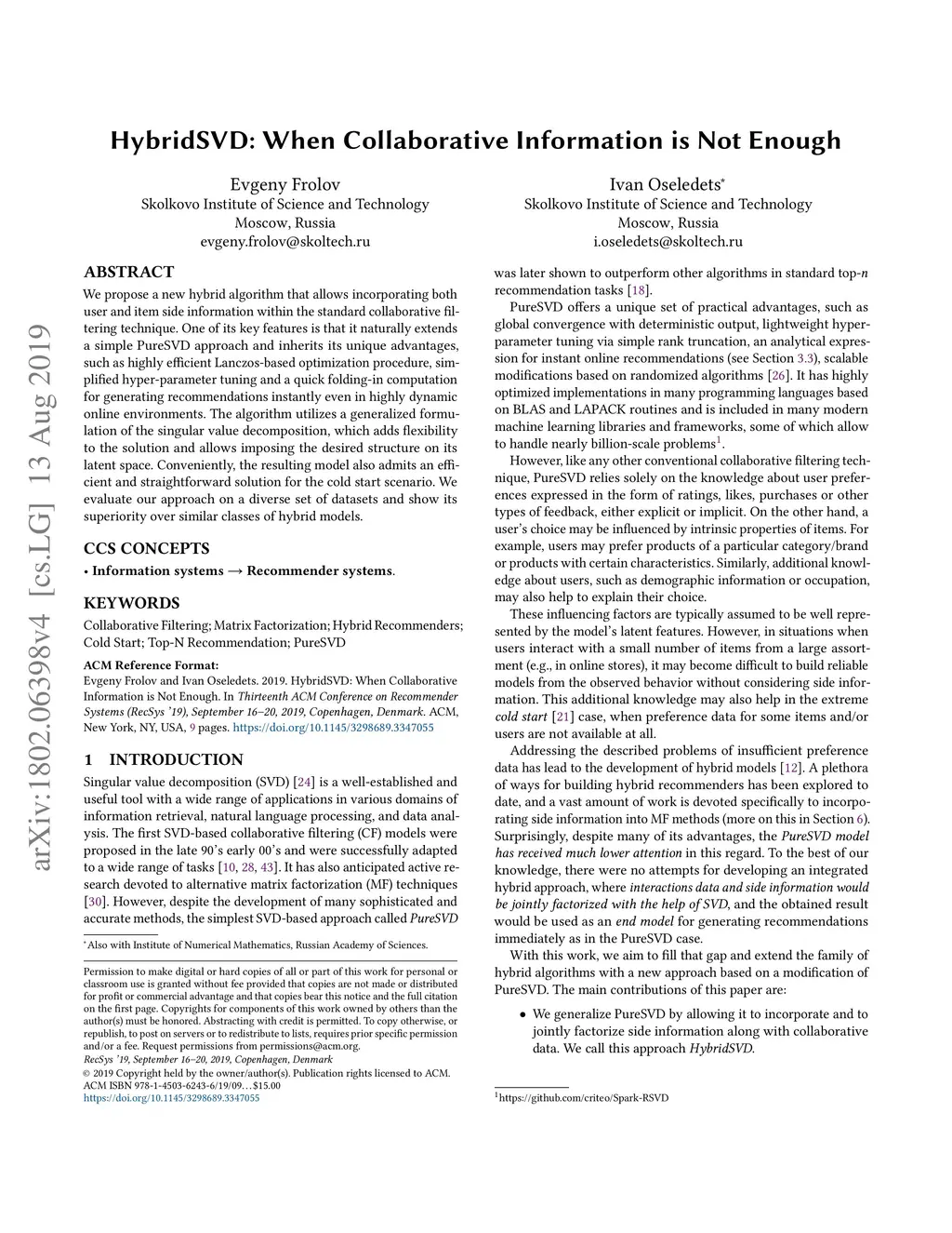 HybridSVD: When Collaborative Information is Not Enough