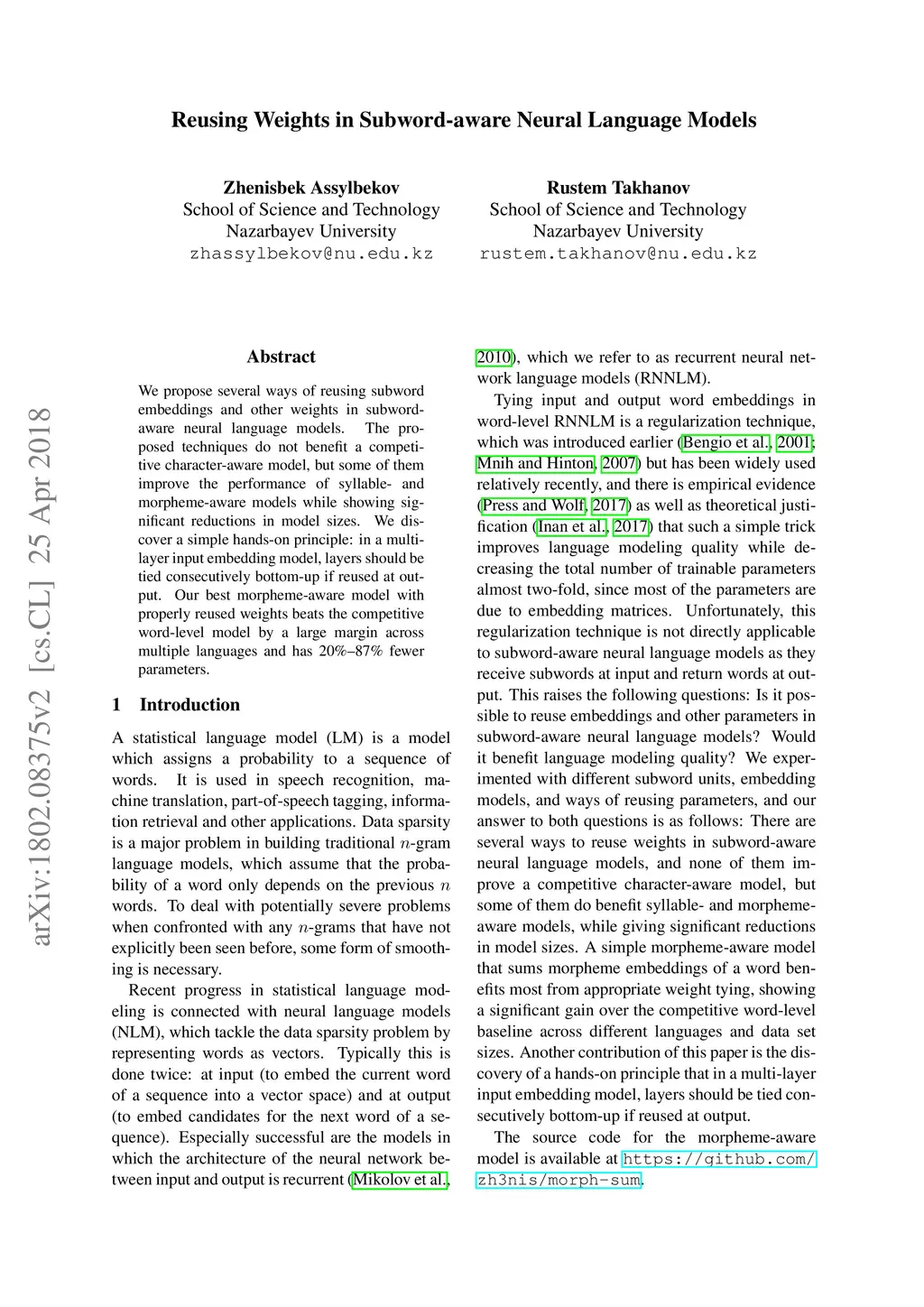 Reusing Weights in Subword-aware Neural Language Models