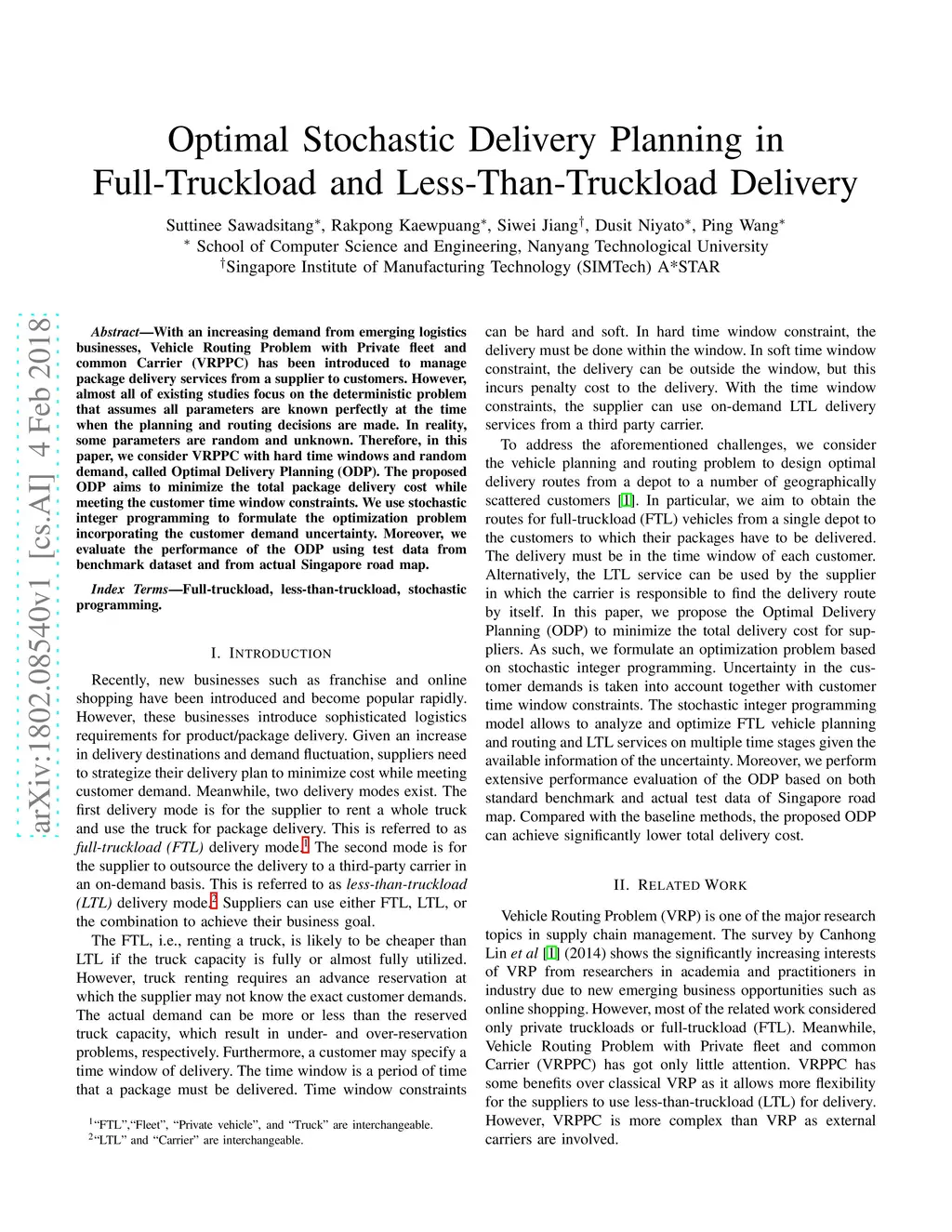 Optimal Stochastic Delivery Planning in Full-Truckload and