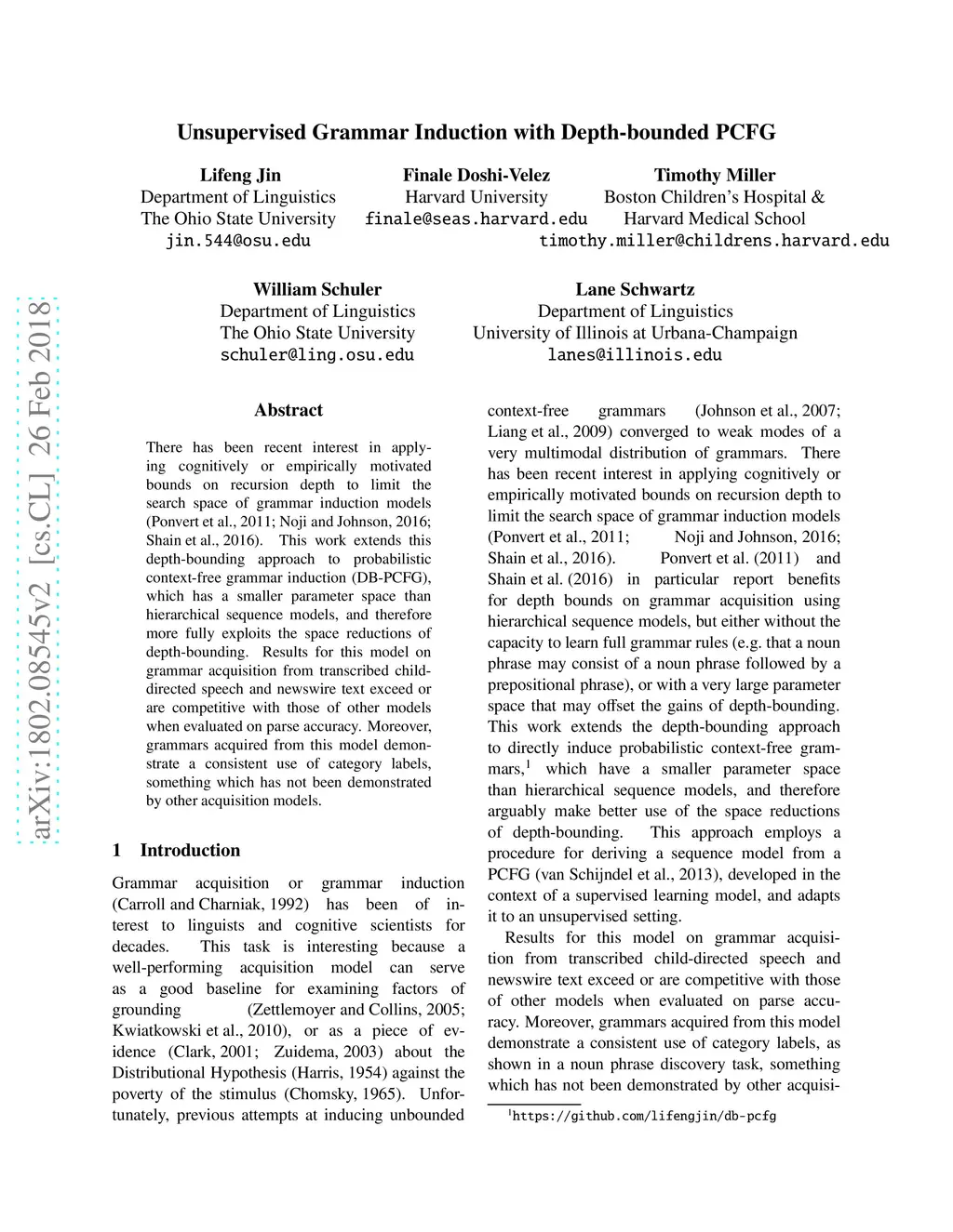Unsupervised Grammar Induction with Depth-bounded PCFG
