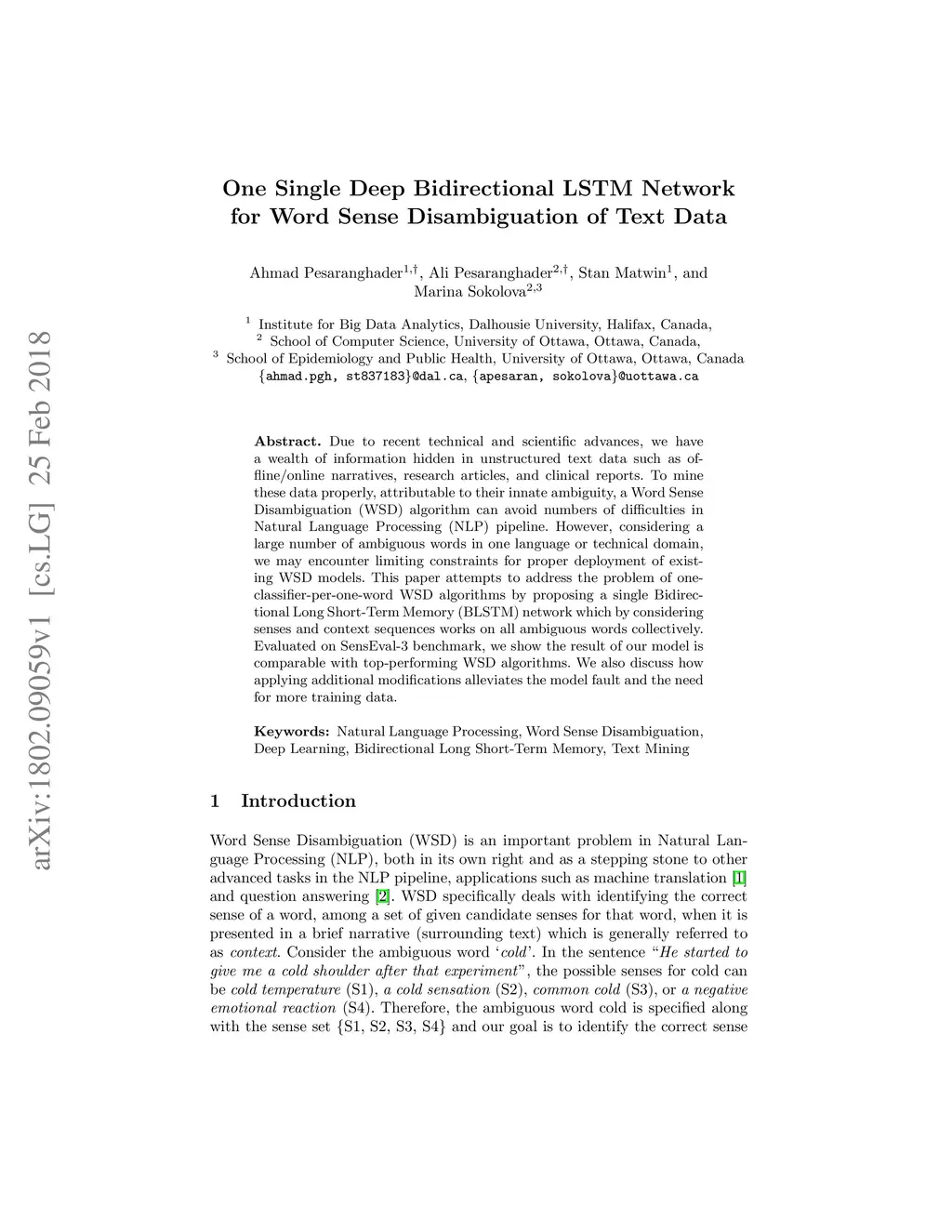 One Single Deep Bidirectional LSTM Network for Word Sense Disambiguation