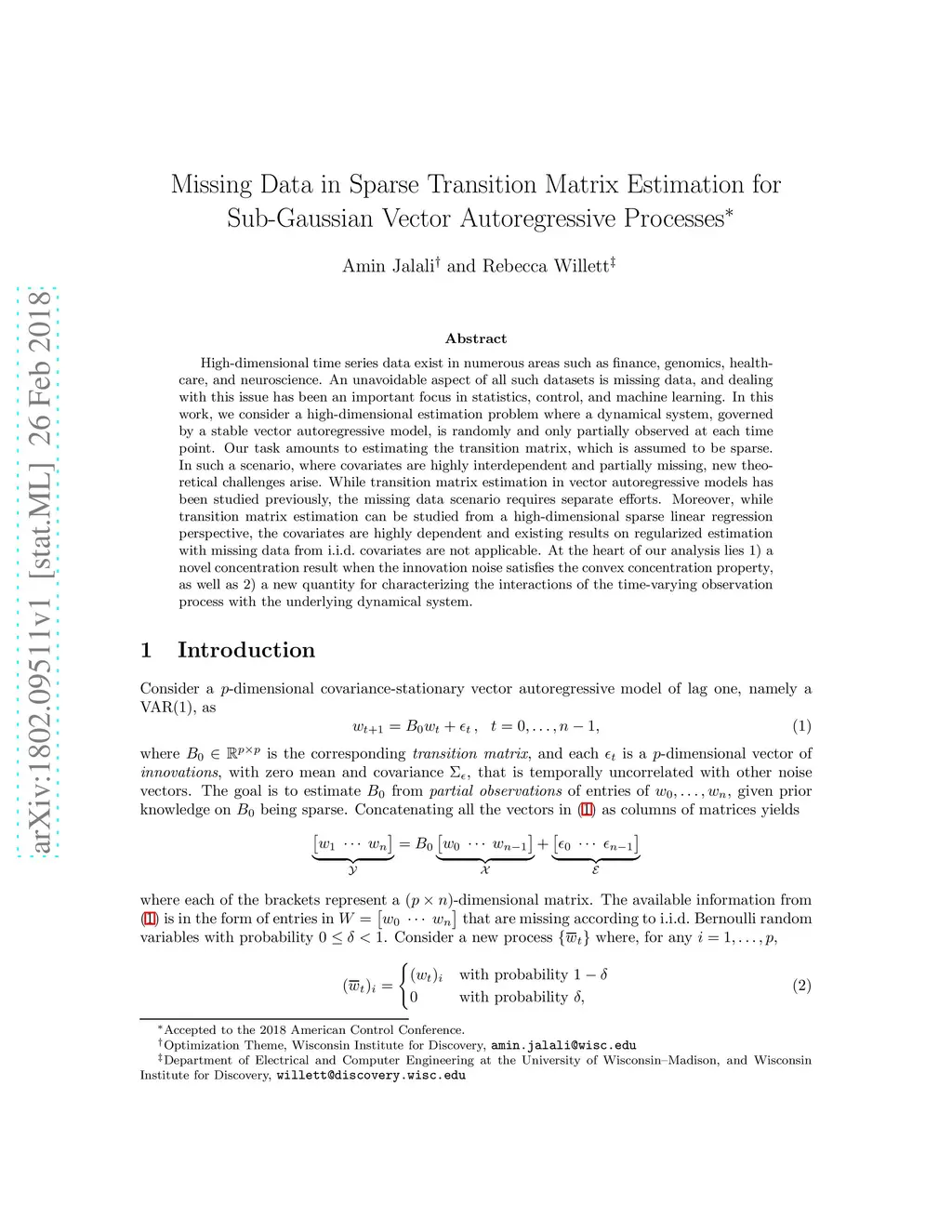 Missing Data in Sparse Transition Matrix Estimation for Sub-Gaussian