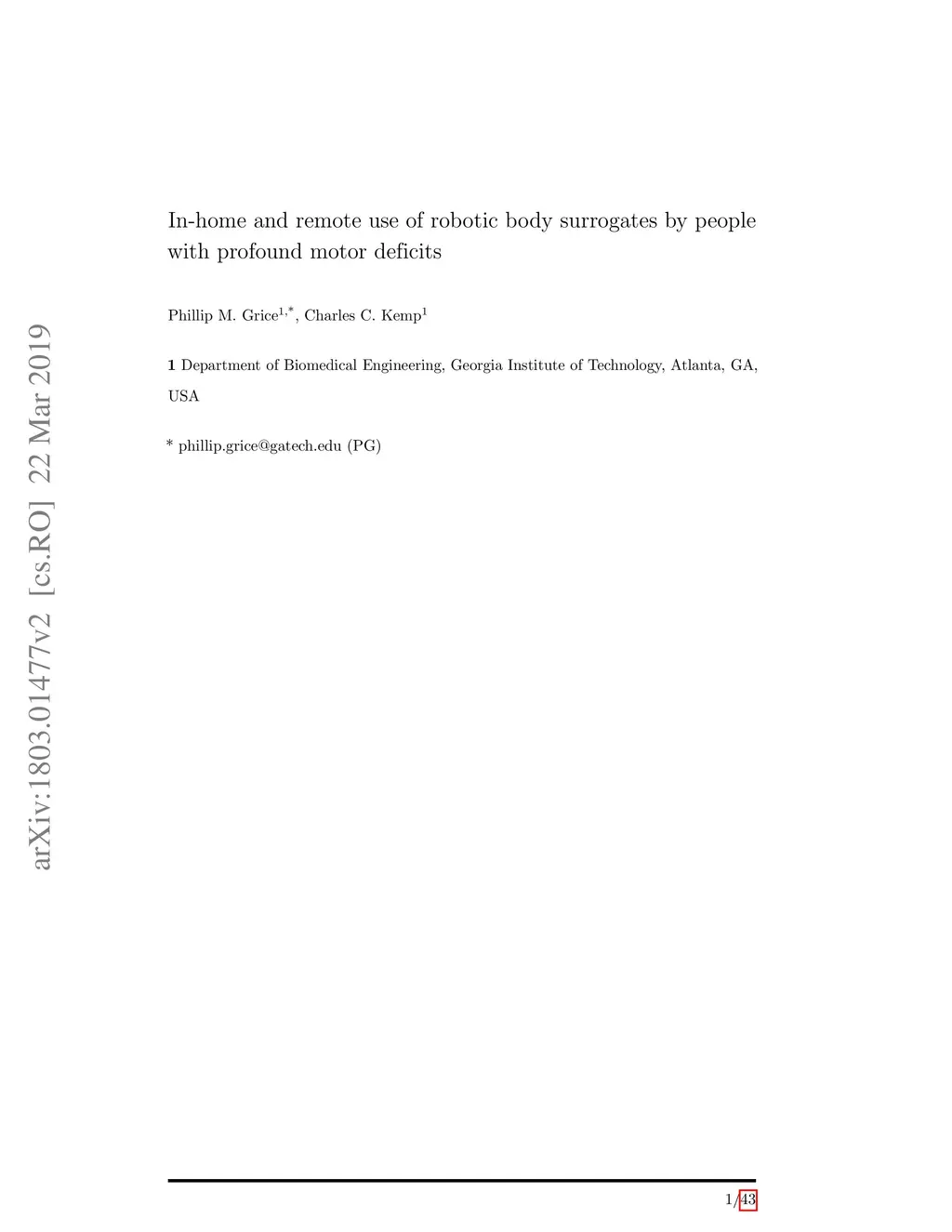 By controlling robots comparable to the human body, people with profound motor deficits could potentially perform a variety of physical tasks for themselves, improving their quality of life. The extent to which this is achievable has been unclear due to the lack of suitable interfaces by which to control robotic body surrogates and a dearth of studies involving substantial numbers of people with profound motor deficits. We developed a novel, web-based augmented reality interface that enables people with profound motor deficits to remotely control a PR2 mobile manipulator from Willow Garage, which is a human-scale, wheeled robot with two arms. We then conducted two studies to investigate the use of robotic body surrogates. In the first study, 15 novice users with profound motor deficits from across the United States controlled a PR2 in Atlanta, GA to perform a modified Action Research Arm Test (ARAT) and a simulated self-care task. Participants achieved clinically meaningful improvements on the ARAT and 12 of 15 participants (80%) successfully completed the simulated self-care task. Participants agreed that the robotic system was easy to use, was useful, and would provide a meaningful improvement in their lives. In the second study, one expert user with profound motor deficits had free use of a PR2 in his home for seven days. He performed a variety of self-care and household tasks, and also used the robot in novel ways. Taking both studies together, our results suggest that people with profound motor deficits can improve their quality of life using robotic body surrogates, and that they can gain benefit with only low-level robot autonomy and without invasive interfaces. However, methods to reduce the rate of errors and increase operational speed merit further investigation.