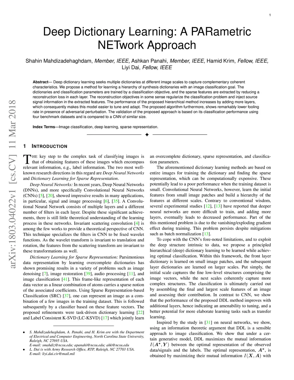 Deep Dictionary Learning: A PARametric NETwork Approach