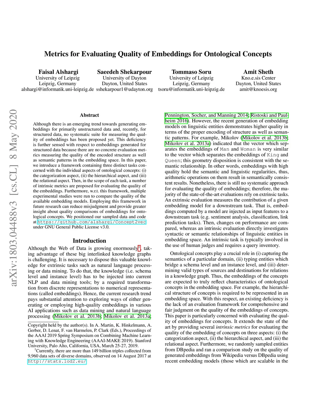 Concept2vec: Metrics for Evaluating Quality of Embeddings for
