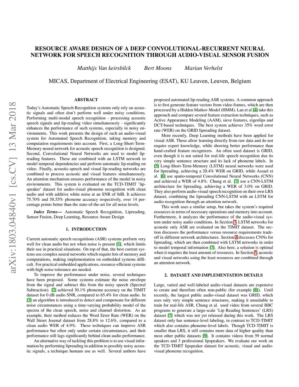 for speech recognition through audio-visual sensor fusion