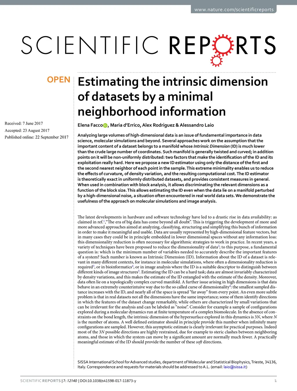 Estimating the intrinsic dimension of datasets by a minimal neighborhood