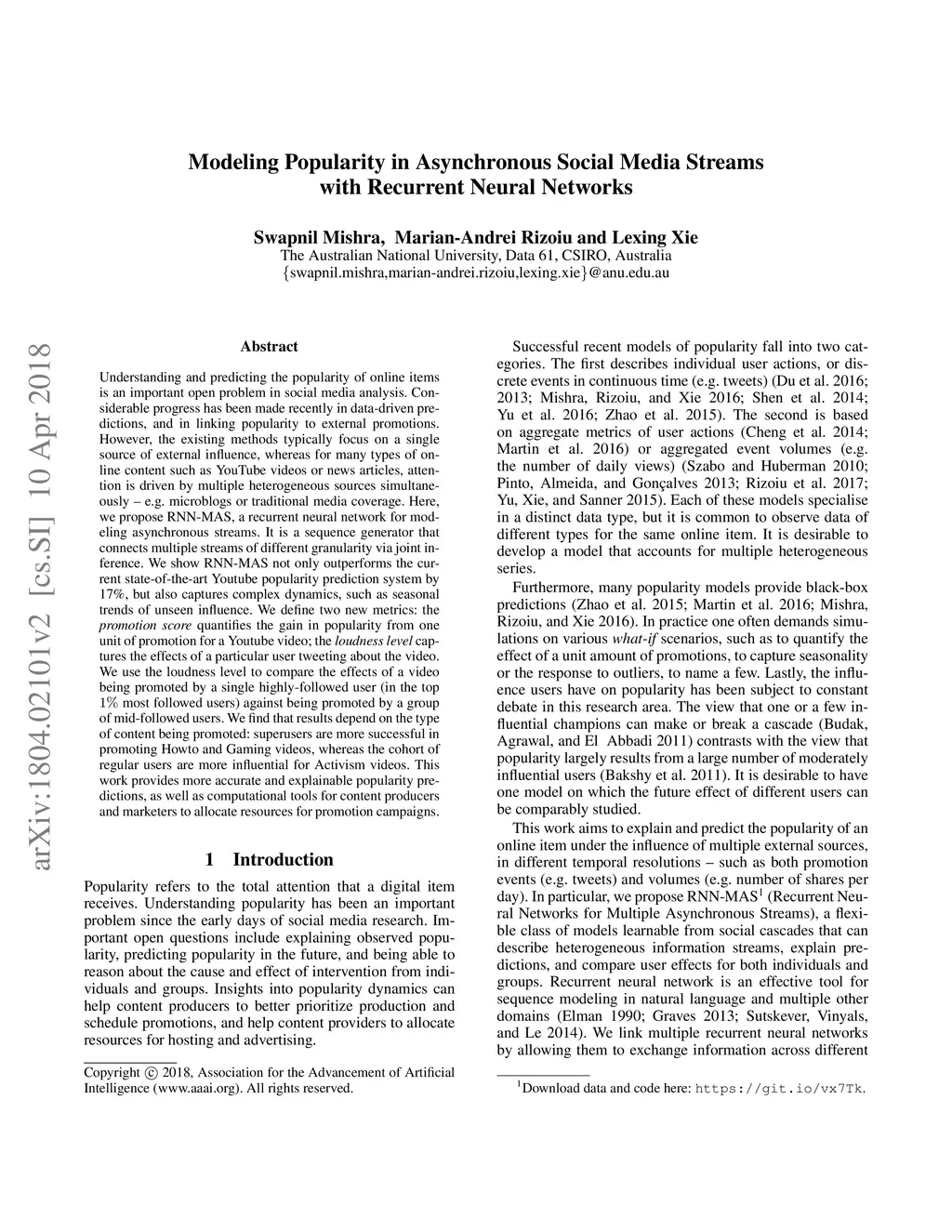Modeling Popularity in Asynchronous Social Media Streams with Recurrent
