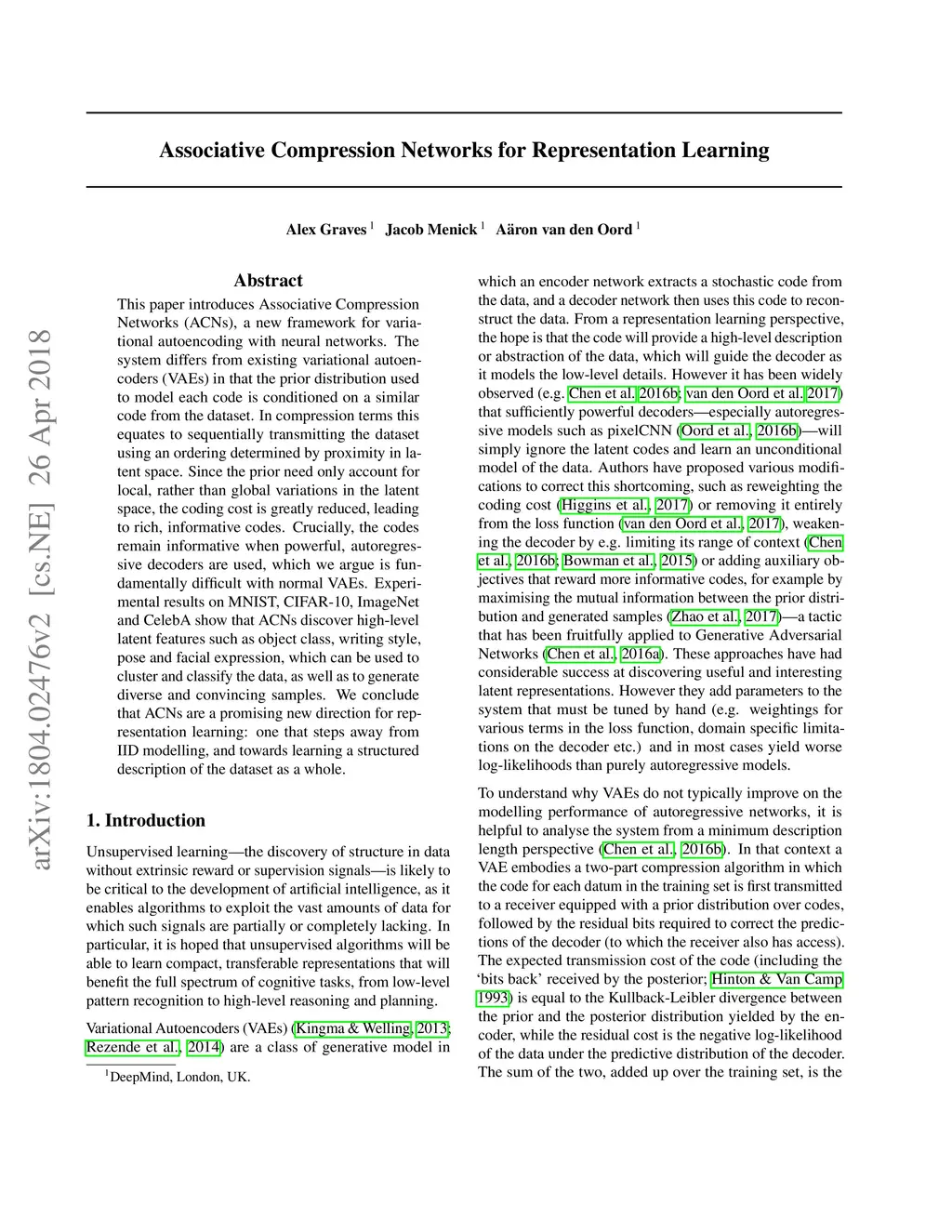 Associative Compression Networks for Representation Learning
