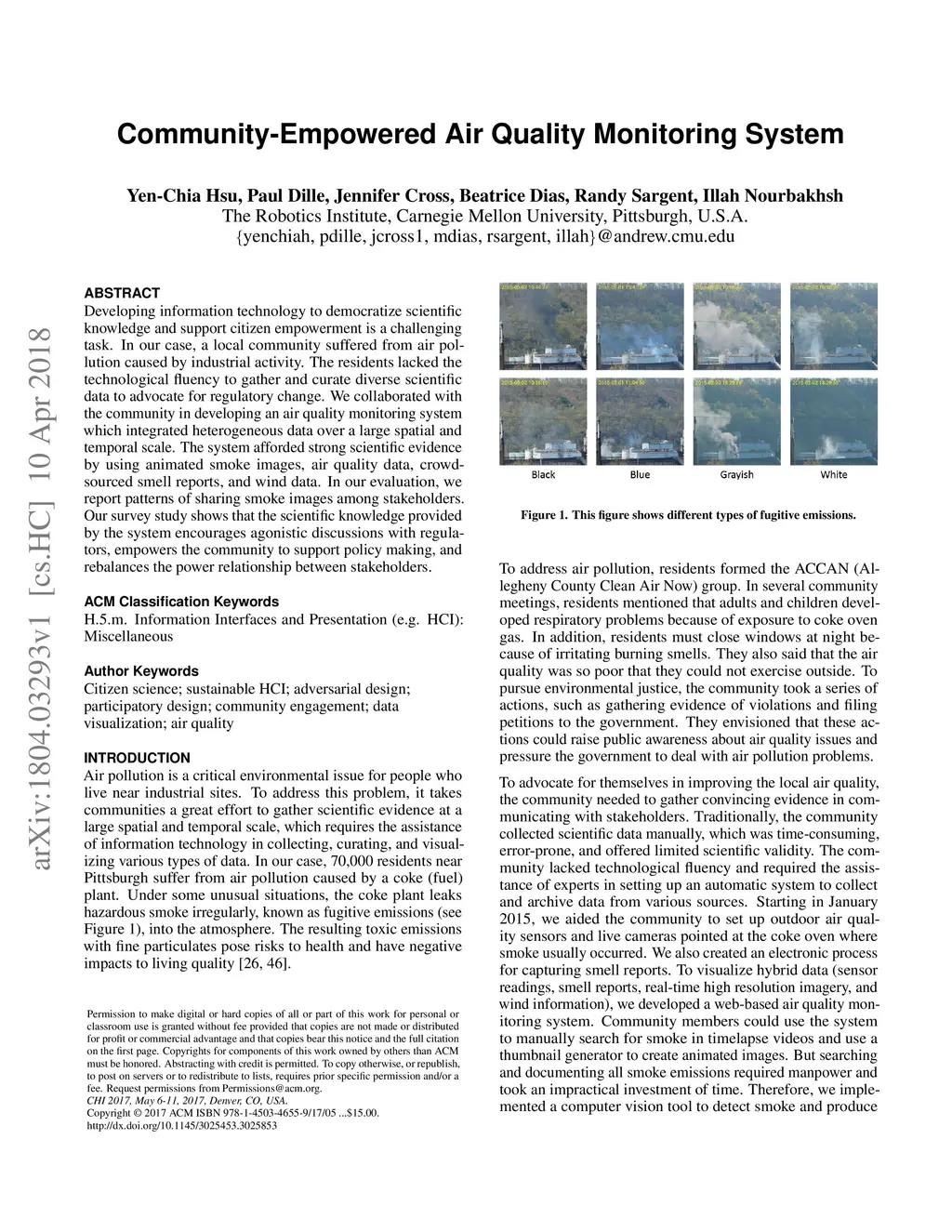 Developing information technology to democratize scientific knowledge and support citizen empowerment is a challenging task. In our case, a local community suffered from air pollution caused by industrial activity. The residents lacked the technological fluency to gather and curate diverse scientific data to advocate for regulatory change. We collaborated with the community in developing an air quality monitoring system which integrated heterogeneous data over a large spatial and temporal scale. The system afforded strong scientific evidence by using animated smoke images, air quality data, crowdsourced smell reports, and wind data. In our evaluation, we report patterns of sharing smoke images among stakeholders. Our survey study shows that the scientific knowledge provided by the system encourages agonistic discussions with regulators, empowers the community to support policy making, and rebalances the power relationship between stakeholders.