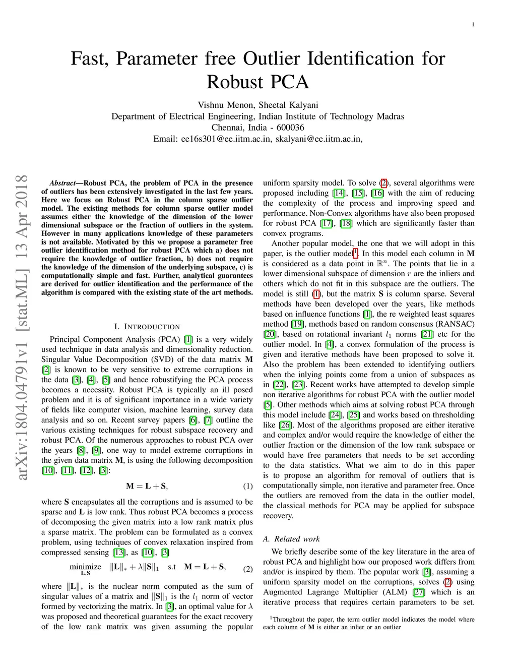Fast, Parameter free Outlier Identification for Robust PCA