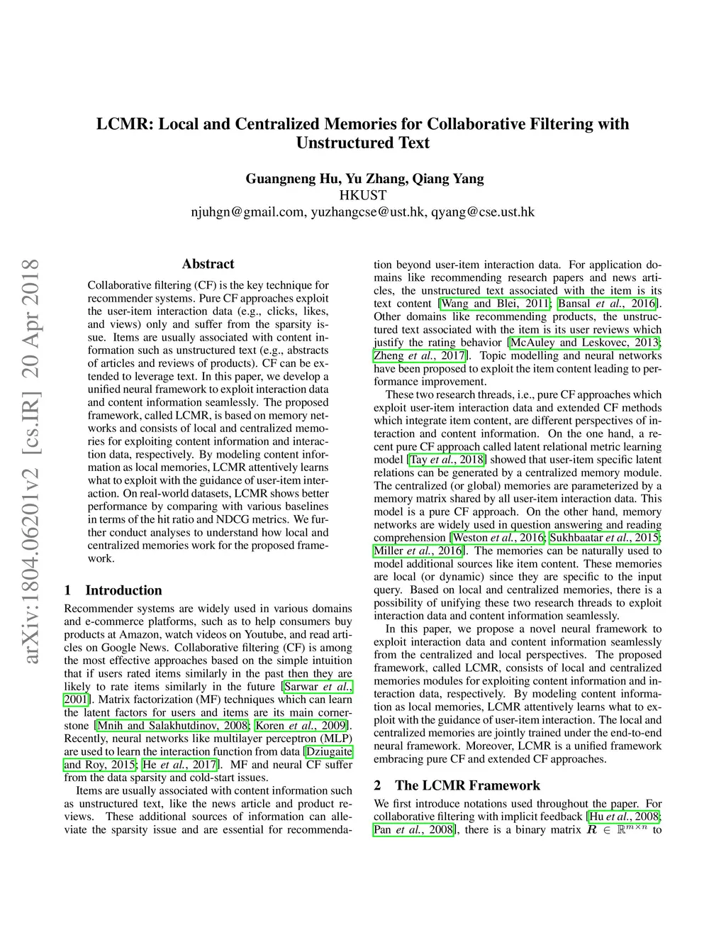 LCMR: Local and Centralized Memories for Collaborative Filtering with