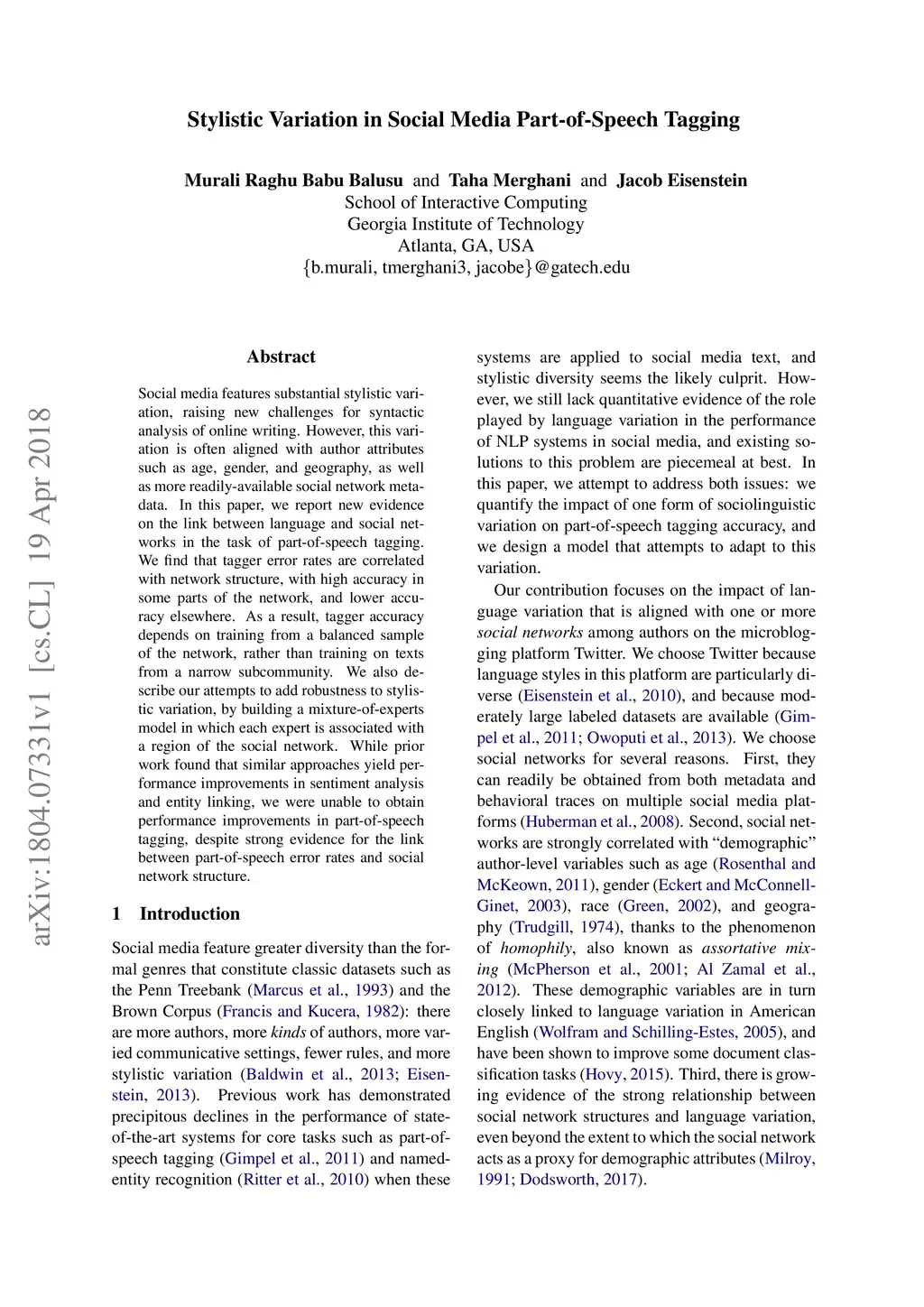 Stylistic Variation in Social Media Part-of-Speech Tagging