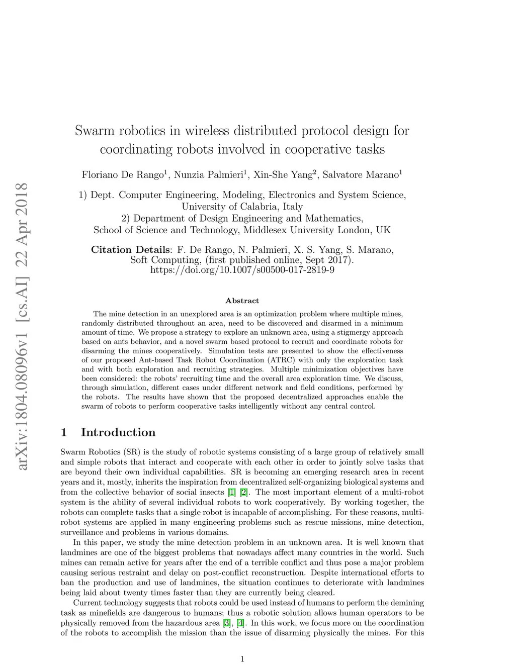 Swarm robotics in wireless distributed protocol design for coordinating