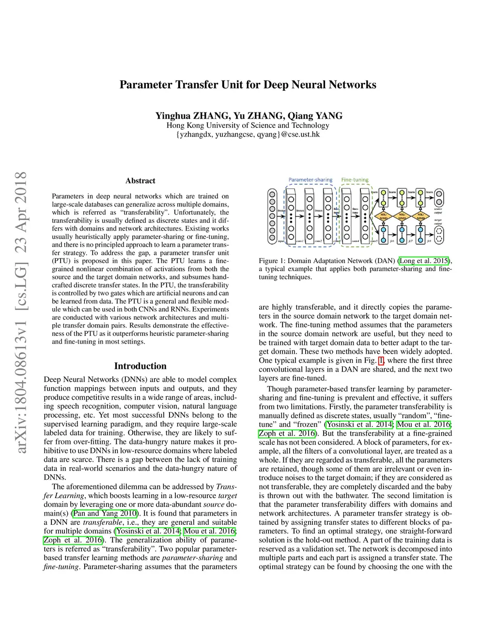 Parameters in deep neural networks which are trained on large-scale databases can generalize across multiple domains, which is referred as "transferability". Unfortunately, the transferability is usually defined as discrete states and it differs with domains and network architectures. Existing works usually heuristically apply parameter-sharing or fine-tuning, and there is no principled approach to learn a parameter transfer strategy. To address the gap, a parameter transfer unit (PTU) is proposed in this paper. The PTU learns a fine-grained nonlinear combination of activations from both the source and the target domain networks, and subsumes hand-crafted discrete transfer states. In the PTU, the transferability is controlled by two gates which are artificial neurons and can be learned from data. The PTU is a general and flexible module which can be used in both CNNs and RNNs. Experiments are conducted with various network architectures and multiple transfer domain pairs. Results demonstrate the effectiveness of the PTU as it outperforms heuristic parameter-sharing and fine-tuning in most settings.