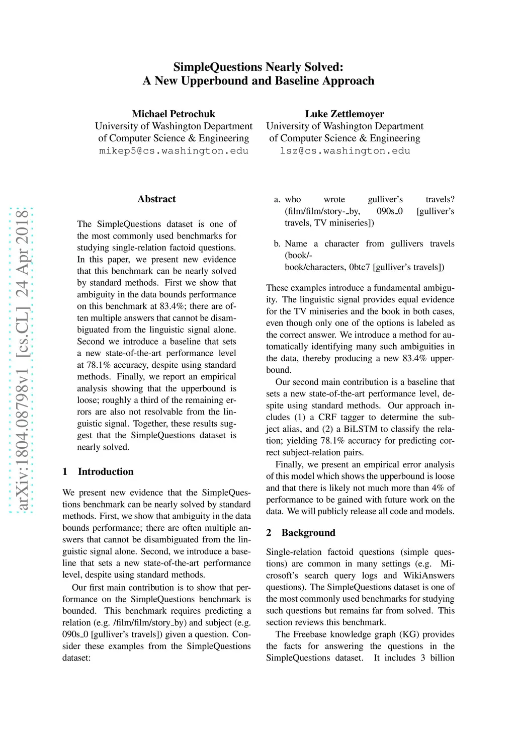 SimpleQuestions Nearly Solved: A New Upperbound and Baseline Approach
