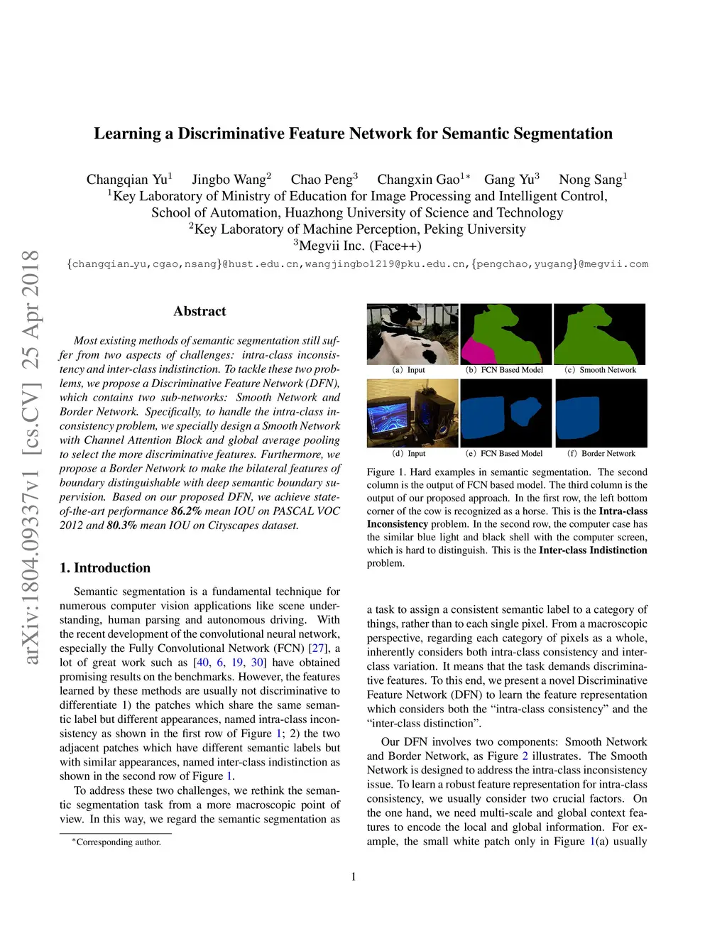 Learning a Discriminative Feature Network for Semantic Segmentation