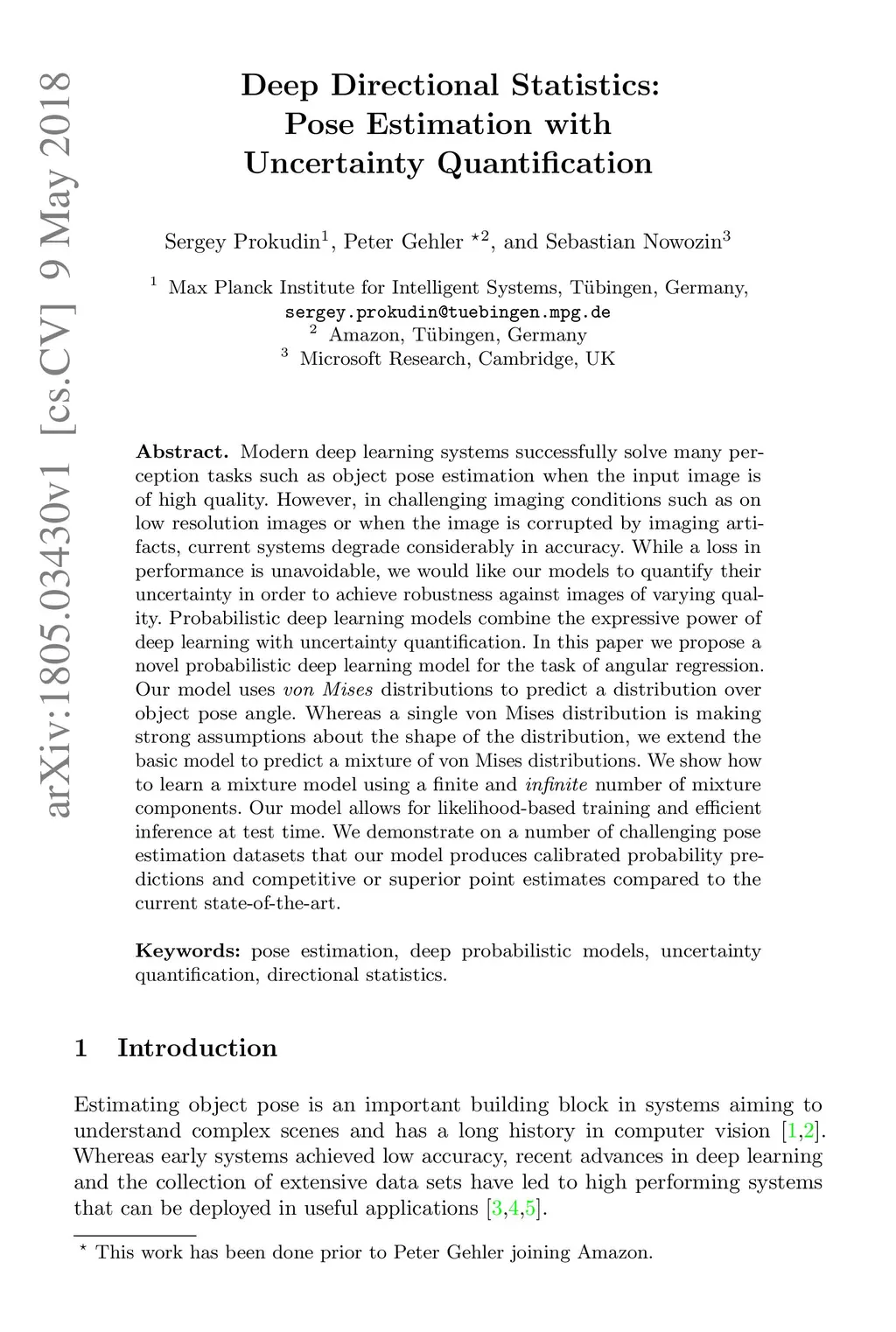 Deep Directional Statistics: Pose Estimation with Uncertainty