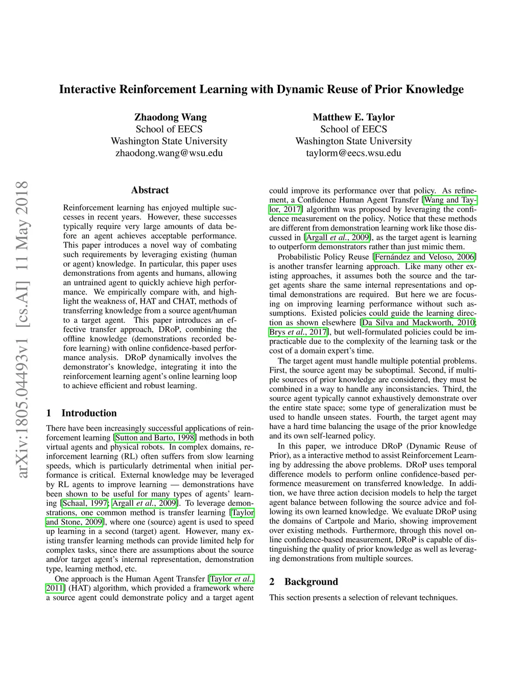 Reinforcement learning has enjoyed multiple successes in recent years. However, these successes typically require very large amounts of data before an agent achieves acceptable performance. This paper introduces a novel way of combating such requirements by leveraging existing (human or agent) knowledge. In particular, this paper uses demonstrations from agents and humans, allowing an untrained agent to quickly achieve high performance. We empirically compare with, and highlight the weakness of, HAT and CHAT, methods of transferring knowledge from a source agent/human to a target agent. This paper introduces an effective transfer approach, DRoP, combining the offline knowledge (demonstrations recorded before learning) with online confidence-based performance analysis. DRoP dynamically involves the demonstrator's knowledge, integrating it into the reinforcement learning agent's online learning loop to achieve efficient and robust learning.