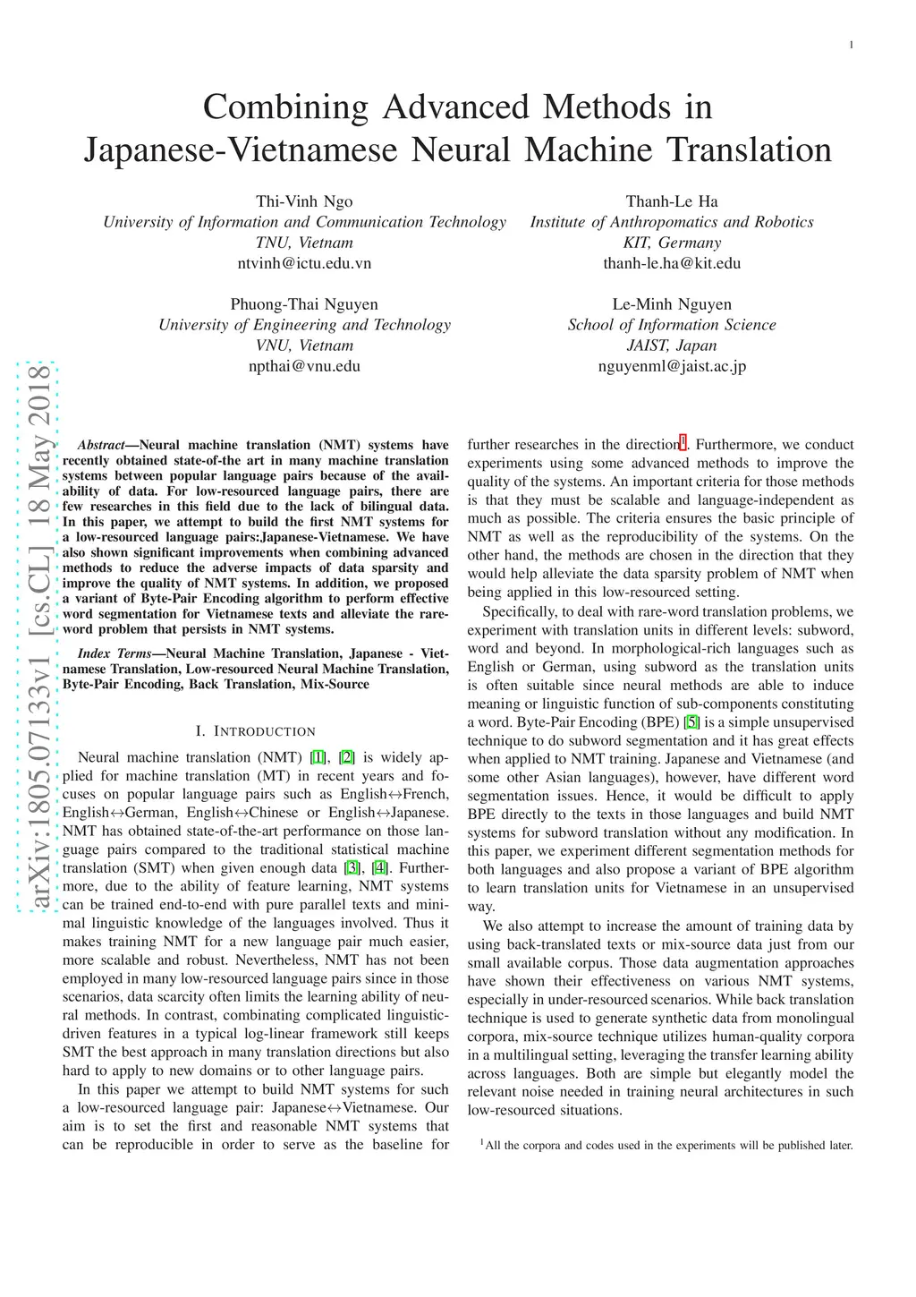 Combining Advanced Methods in Japanese-Vietnamese Neural Machine