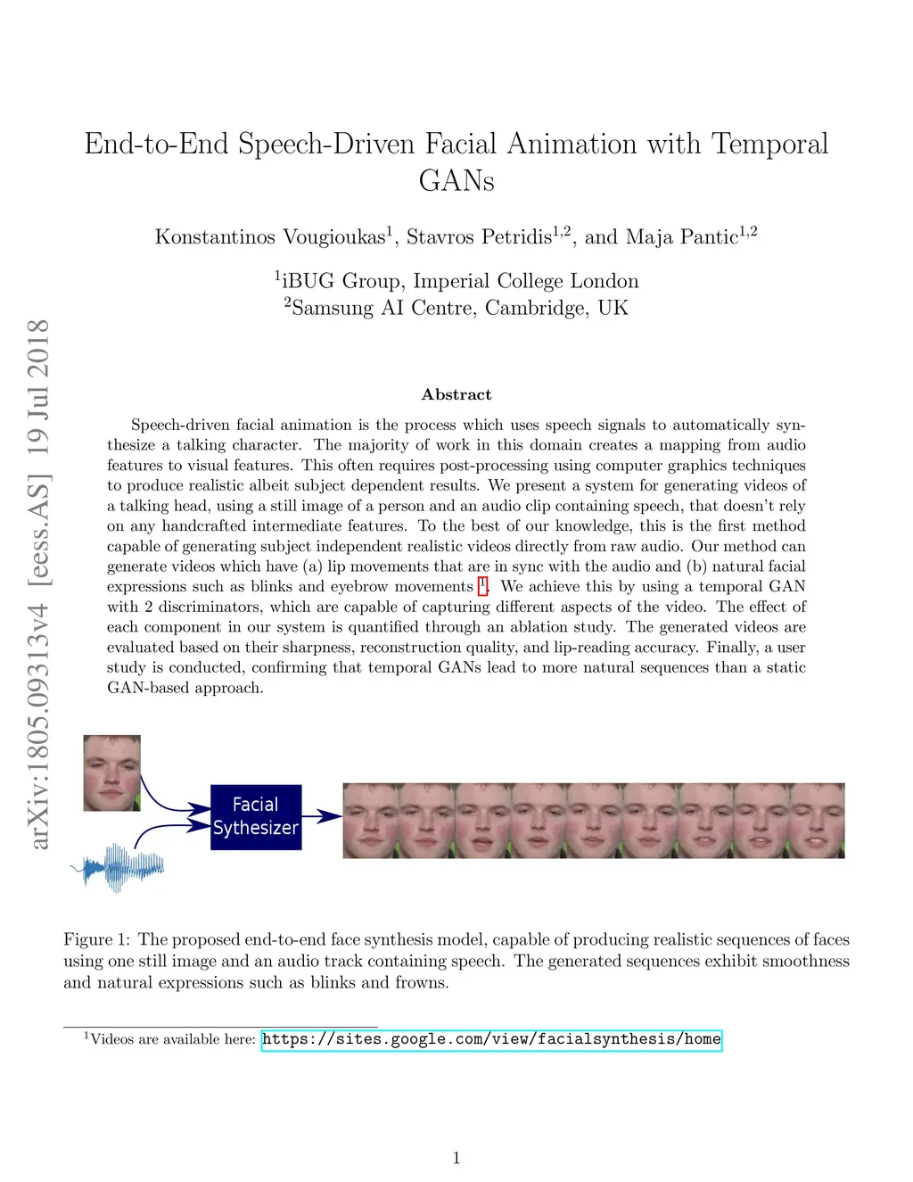 End-to-End Speech-Driven Facial Animation with Temporal GANs