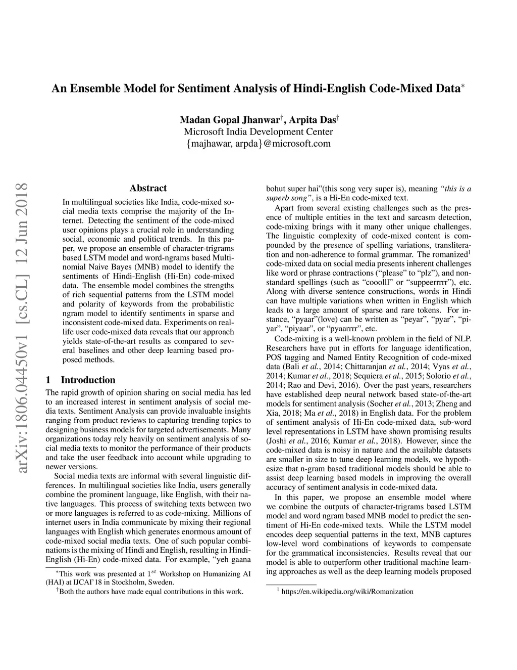 An Ensemble Model for Sentiment Analysis of Hindi-English Code-Mixed