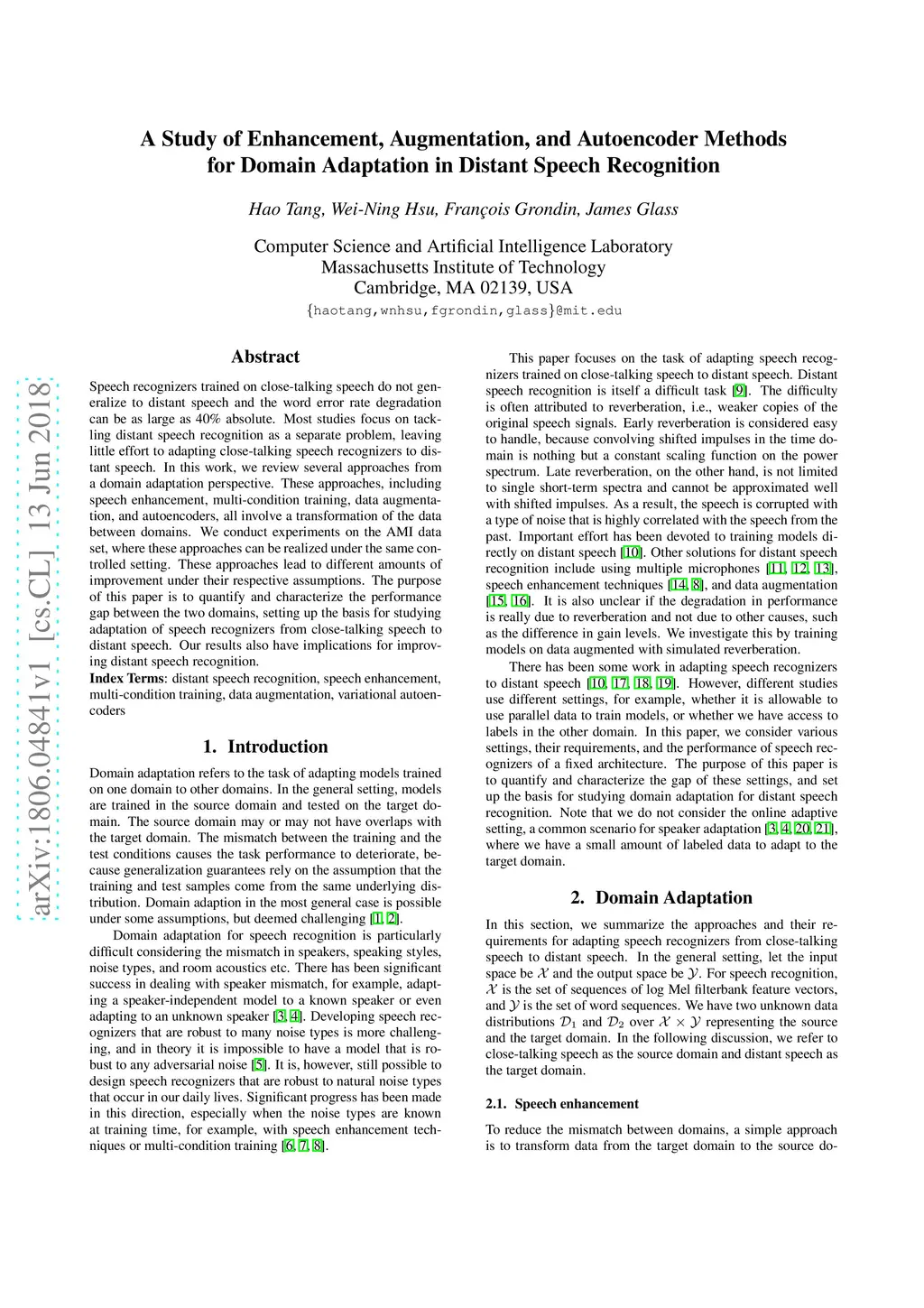 A Study of Enhancement, Augmentation, and Autoencoder Methods for Domain