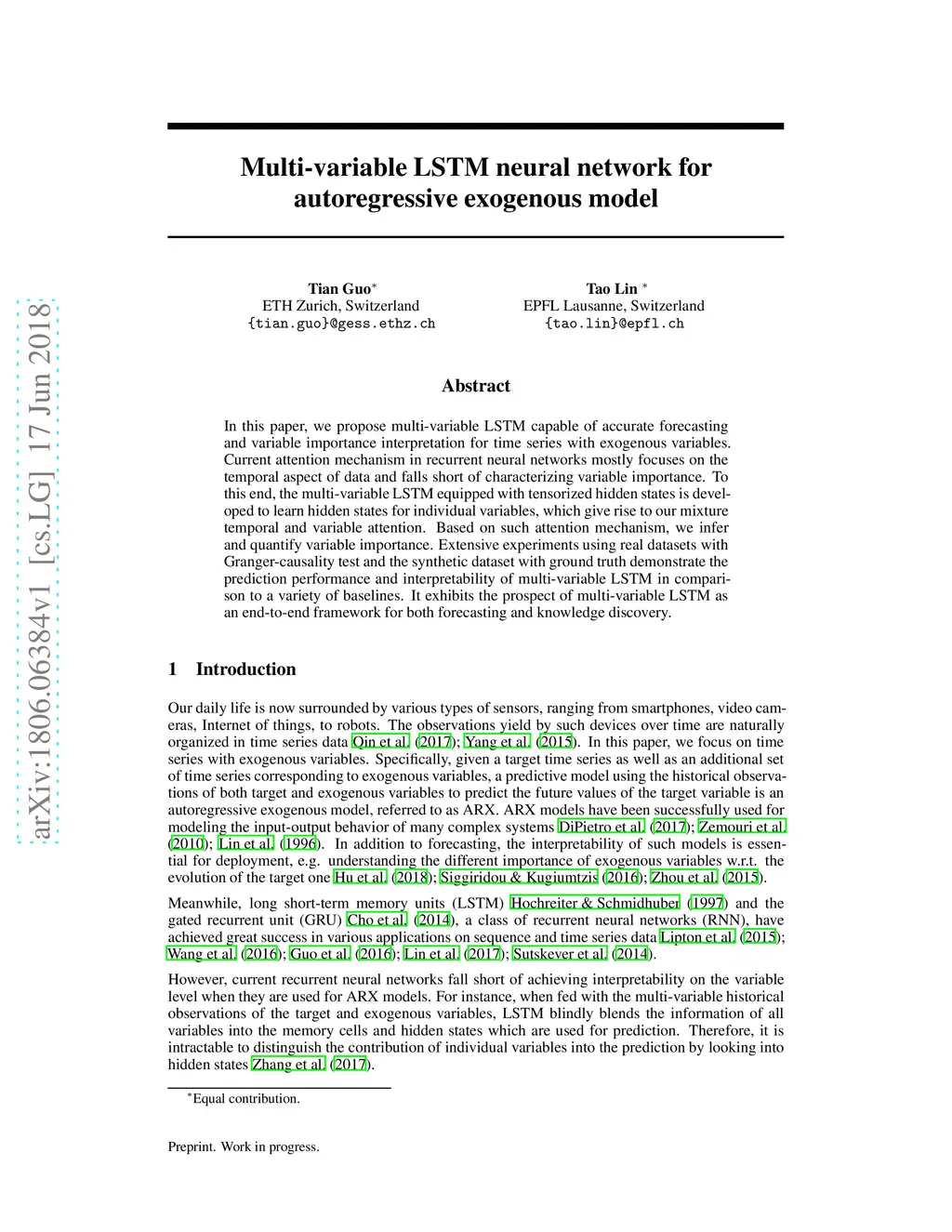 Multi-variable LSTM neural network for autoregressive exogenous model