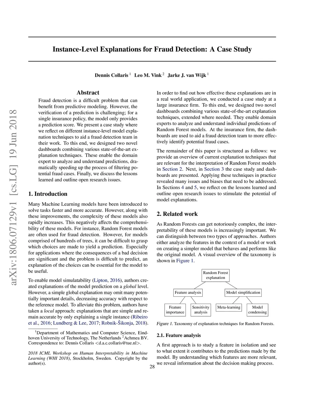 Fraud detection is a difficult problem that can benefit from predictive modeling. However, the verification of a prediction is challenging; for a single insurance policy, the model only provides a prediction score. We present a case study where we reflect on different instance-level model explanation techniques to aid a fraud detection team in their work. To this end, we designed two novel dashboards combining various state-of-the-art explanation techniques. These enable the domain expert to analyze and understand predictions, dramatically speeding up the process of filtering potential fraud cases. Finally, we discuss the lessons learned and outline open research issues.