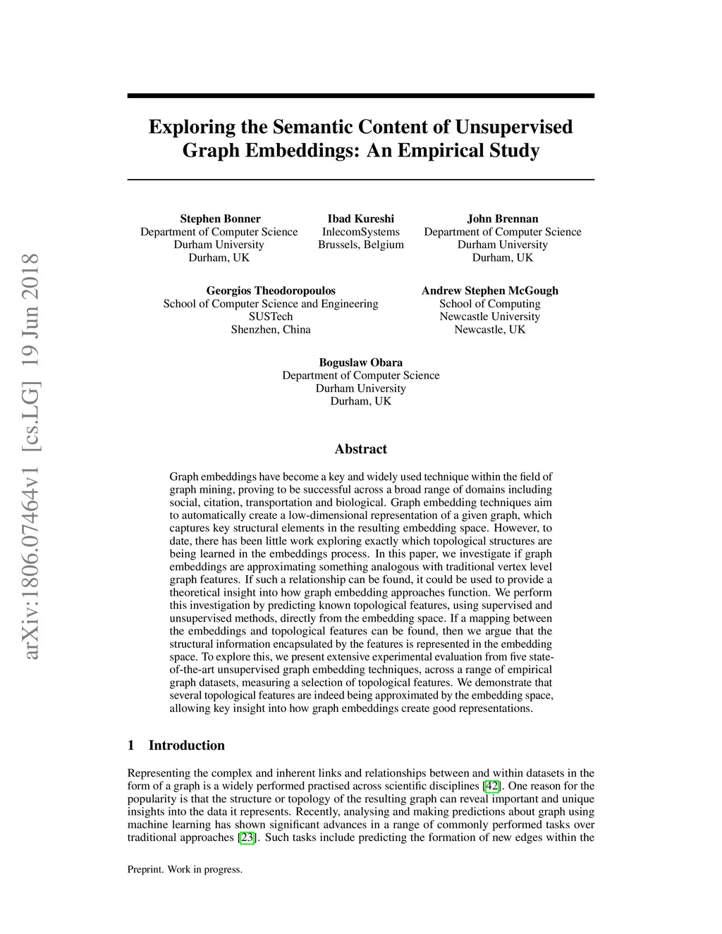 Exploring the Semantic Content of Unsupervised Graph Embeddings: An