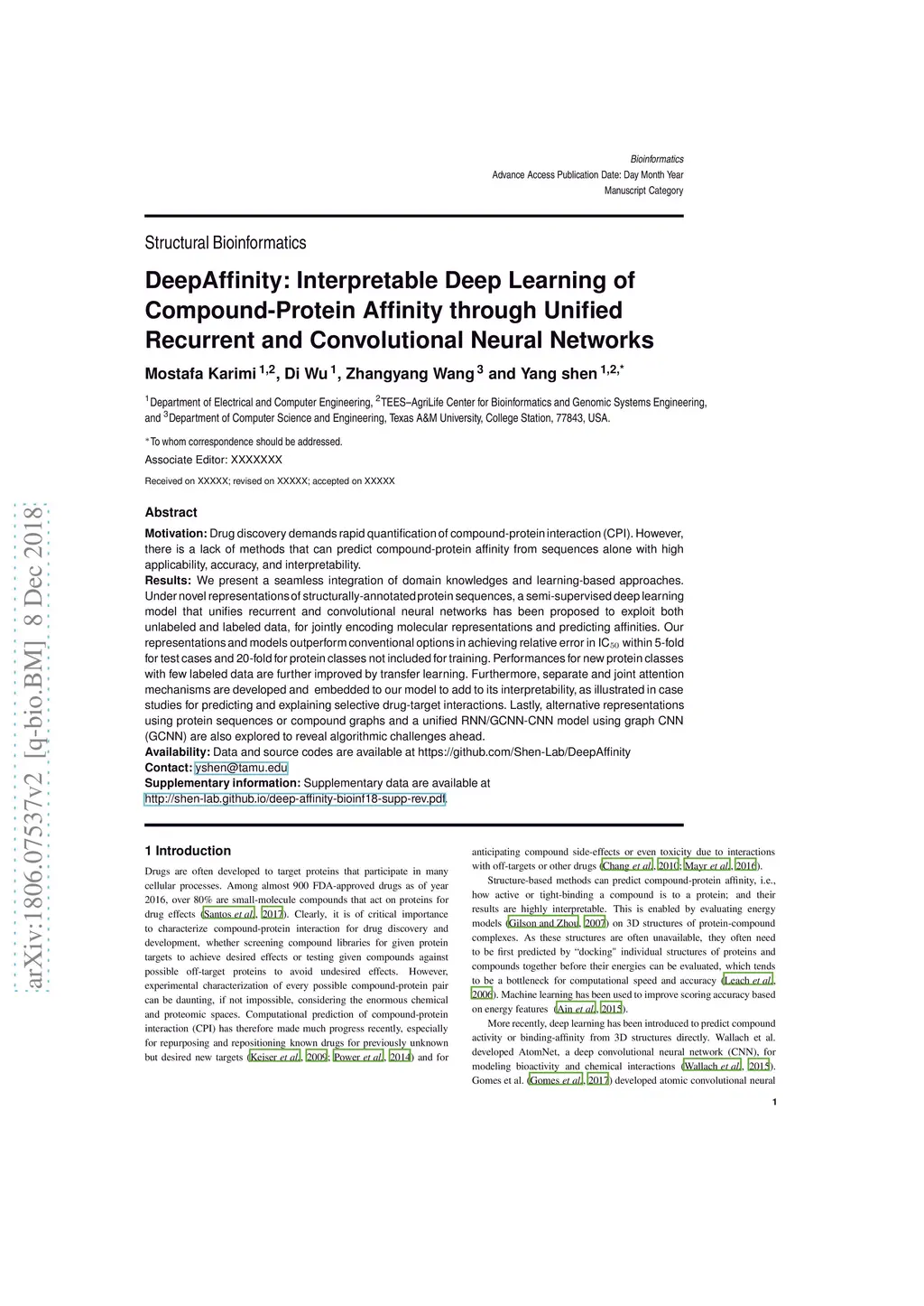 DeepAffinity: Interpretable Deep Learning of Compound-Protein Affinity
