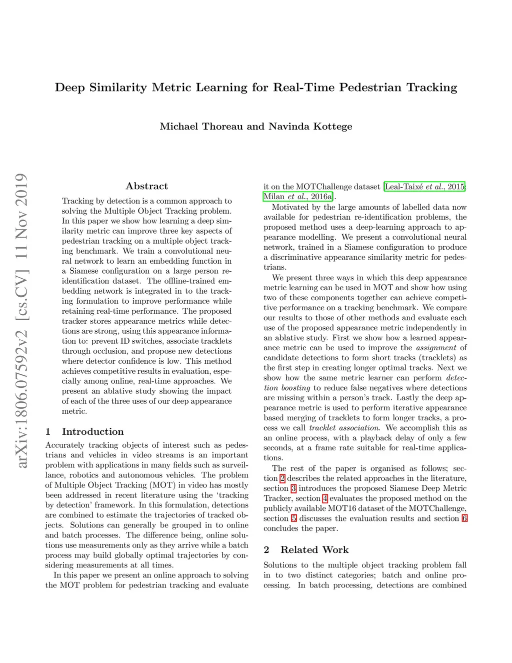 Deep Similarity Metric Learning for Real-Time Pedestrian Tracking