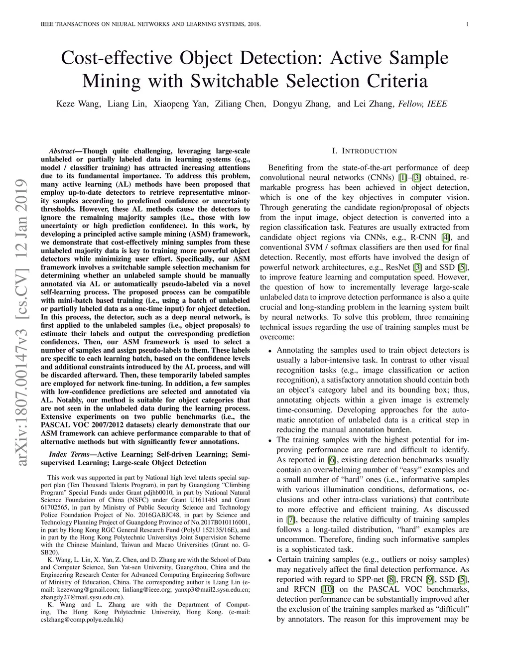 Cost-effective Object Detection: Active Sample Mining with Switchable