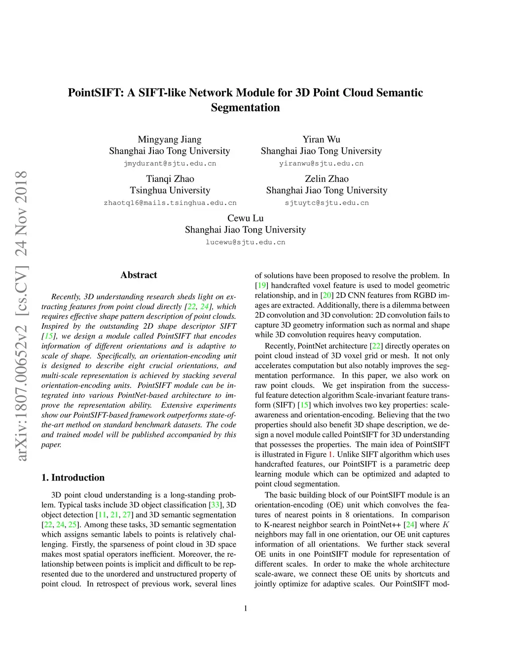 PointSIFT: A SIFT-like Network Module for 3D Point Cloud Semantic