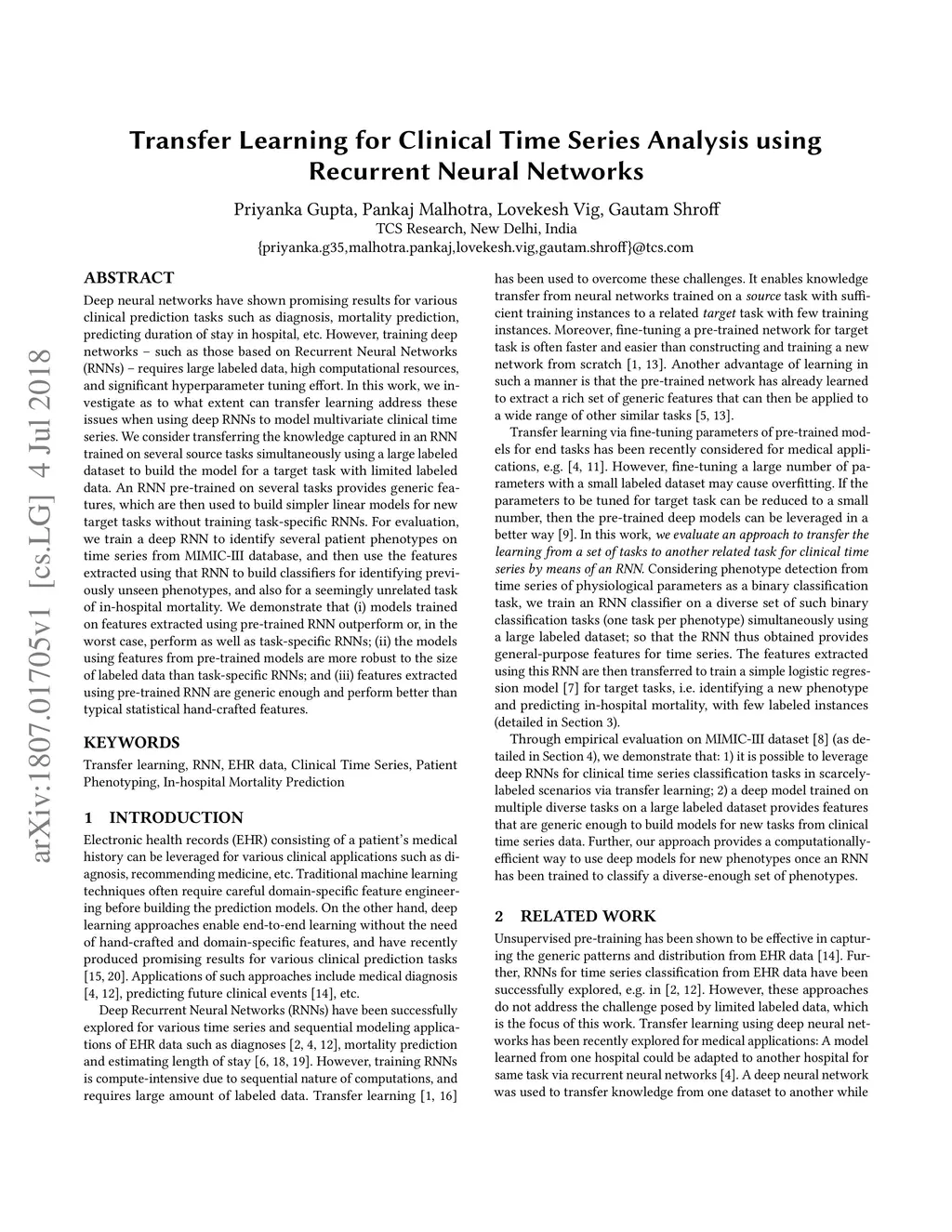Transfer Learning for Clinical Time Series Analysis using Recurrent