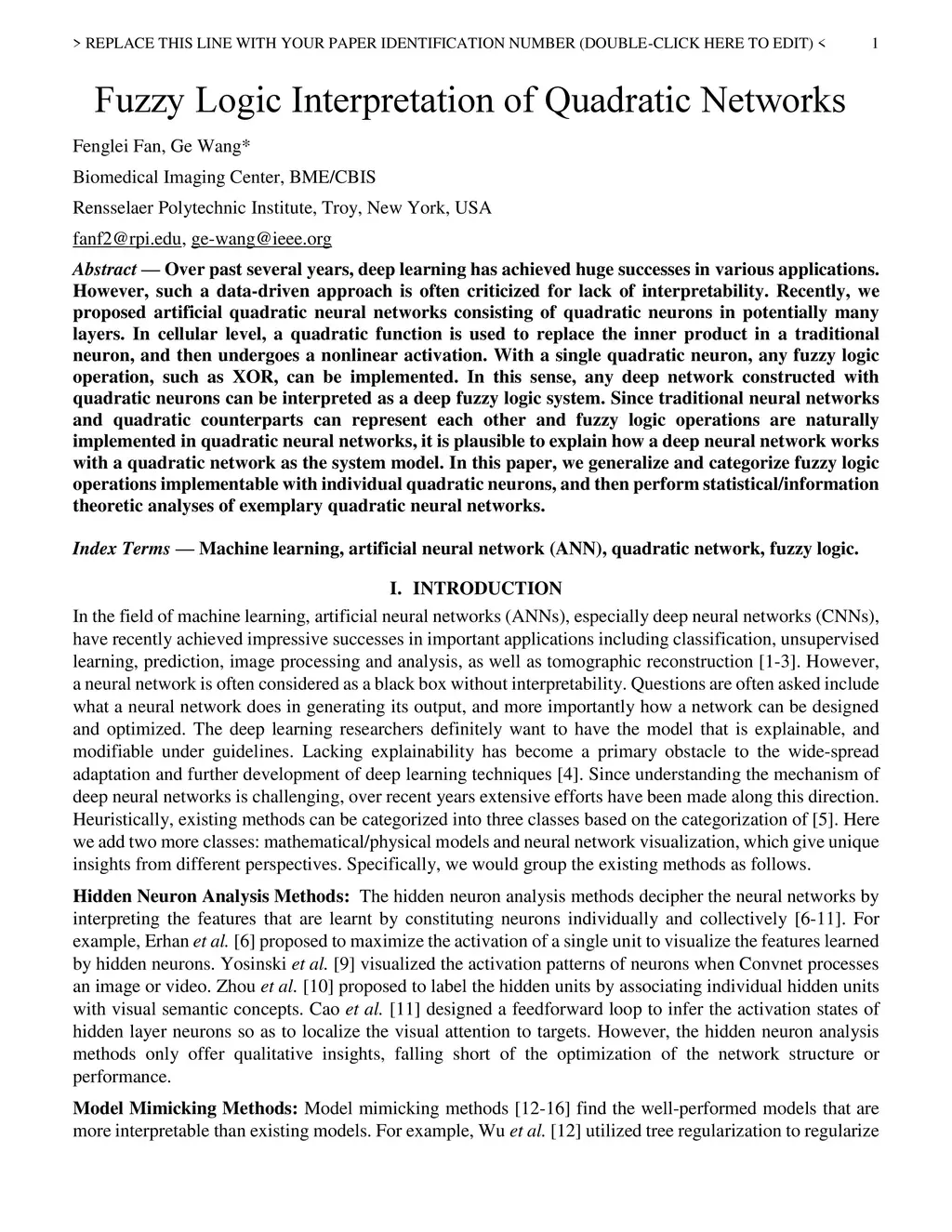 Over past several years, deep learning has achieved huge successes in various applications. However, such a data-driven approach is often criticized for lack of interpretability. Recently, we proposed artificial quadratic neural networks consisting of second-order neurons in potentially many layers. In each second-order neuron, a quadratic function is used in the place of the inner product in a traditional neuron, and then undergoes a nonlinear activation. With a single second-order neuron, any fuzzy logic operation, such as XOR, can be implemented. In this sense, any deep network constructed with quadratic neurons can be interpreted as a deep fuzzy logic system. Since traditional neural networks and second-order counterparts can represent each other and fuzzy logic operations are naturally implemented in second-order neural networks, it is plausible to explain how a deep neural network works with a second-order network as the system model. In this paper, we generalize and categorize fuzzy logic operations implementable with individual second-order neurons, and then perform statistical/information theoretic analyses of exemplary quadratic neural networks.