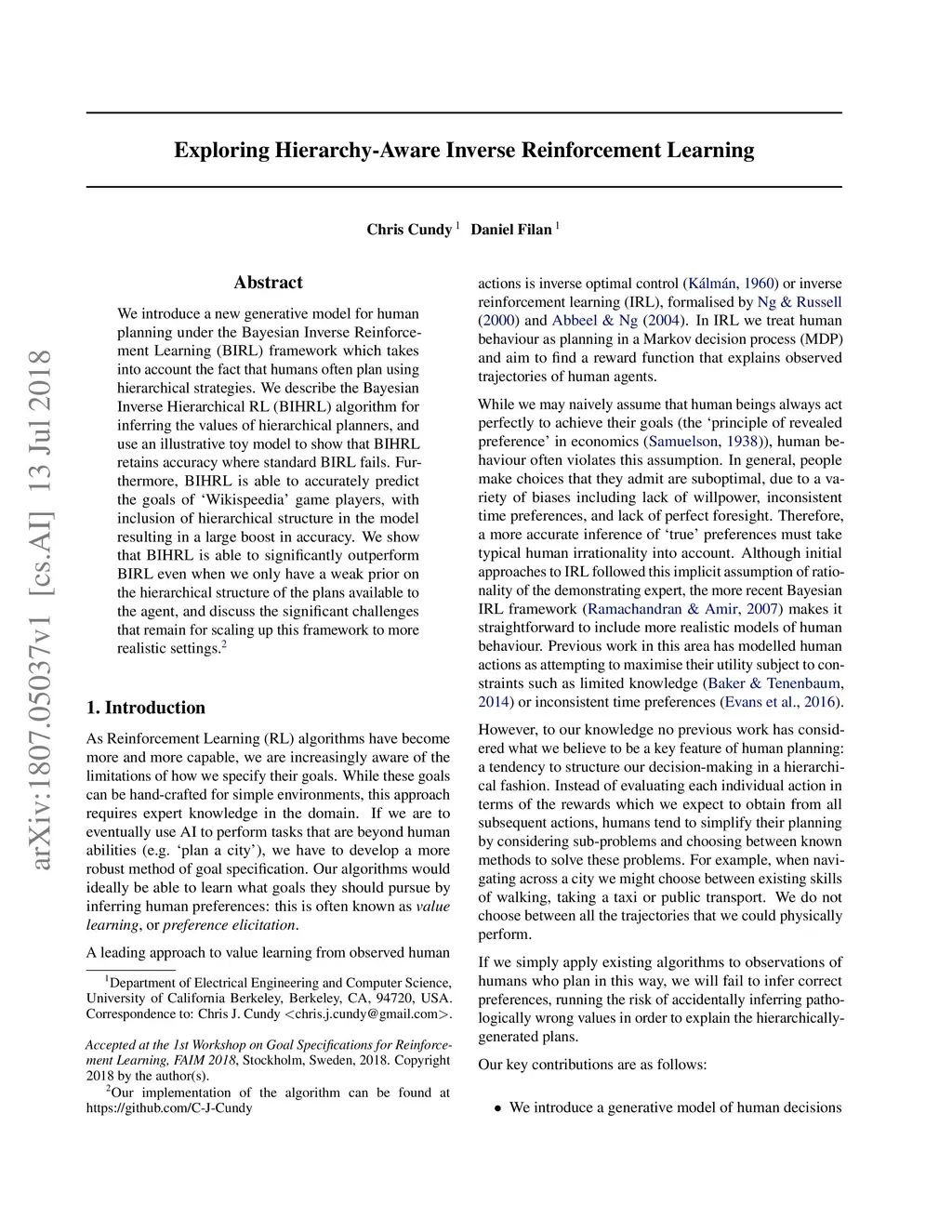 Exploring Hierarchy-Aware Inverse Reinforcement Learning