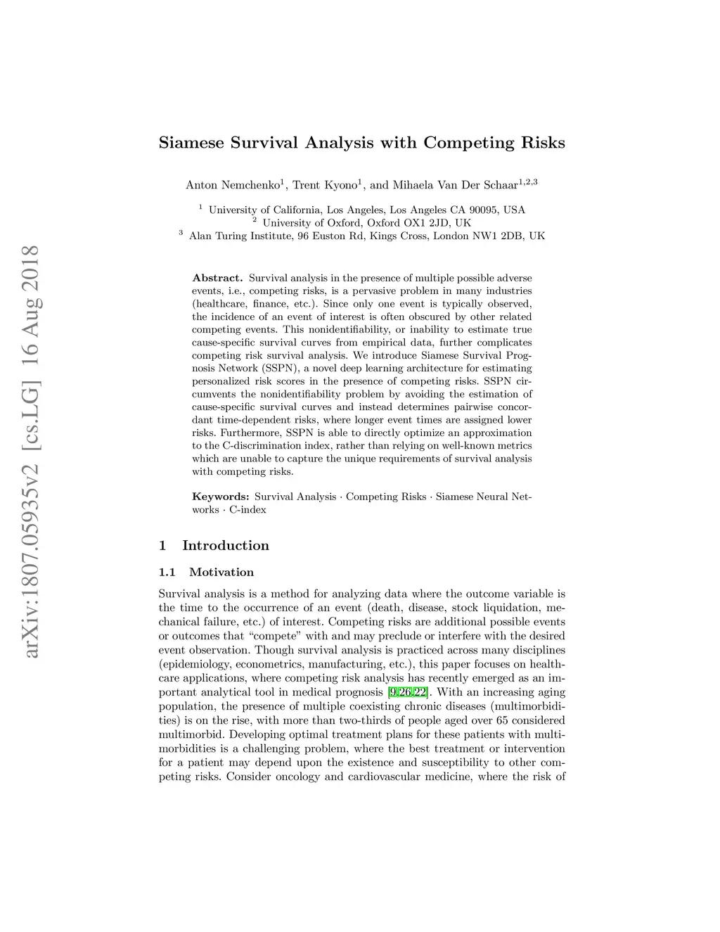 Survival analysis in the presence of multiple possible adverse events, i.e., competing risks, is a pervasive problem in many industries (healthcare, finance, etc.). Since only one event is typically observed, the incidence of an event of interest is often obscured by other related competing events. This nonidentifiability, or inability to estimate true cause-specific survival curves from empirical data, further complicates competing risk survival analysis. We introduce Siamese Survival Prognosis Network (SSPN), a novel deep learning architecture for estimating personalized risk scores in the presence of competing risks. SSPN circumvents the nonidentifiability problem by avoiding the estimation of cause-specific survival curves and instead determines pairwise concordant time-dependent risks, where longer event times are assigned lower risks. Furthermore, SSPN is able to directly optimize an approximation to the C-discrimination index, rather than relying on well-known metrics which are unable to capture the unique requirements of survival analysis with competing risks.