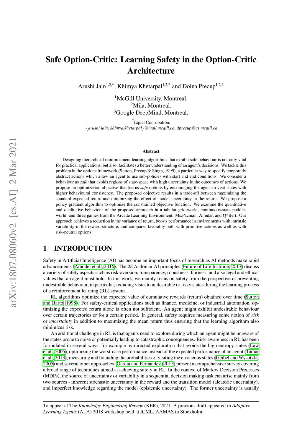 Safe Option-Critic: Learning Safety in the Option-Critic Architecture