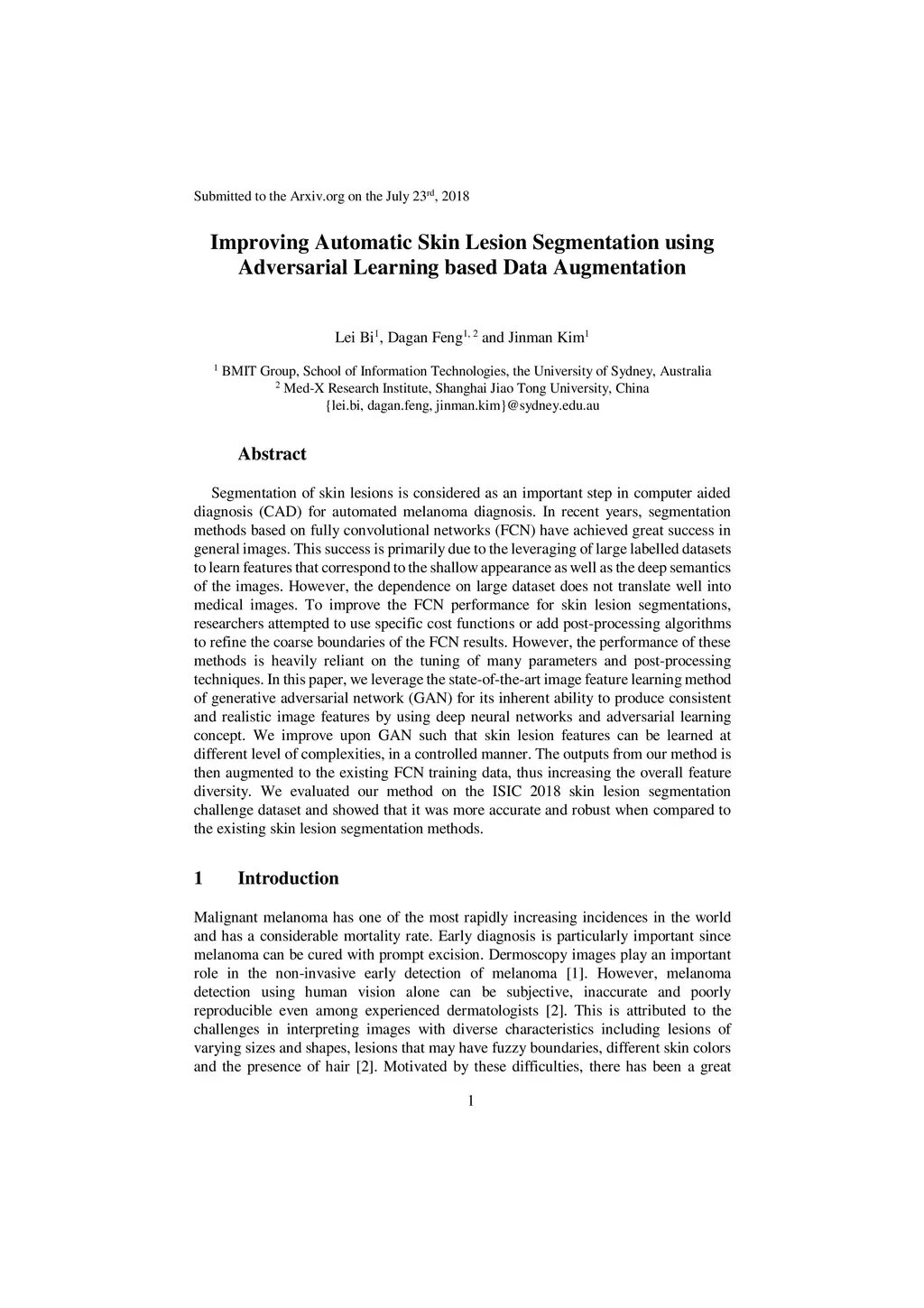 Segmentation of skin lesions is considered as an important step in computer aided diagnosis (CAD) for automated melanoma diagnosis. In recent years, segmentation methods based on fully convolutional networks (FCN) have achieved great success in general images. This success is primarily due to the leveraging of large labelled datasets to learn features that correspond to the shallow appearance as well as the deep semantics of the images. However, the dependence on large dataset does not translate well into medical images. To improve the FCN performance for skin lesion segmentations, researchers attempted to use specific cost functions or add post-processing algorithms to refine the coarse boundaries of the FCN results. However, the performance of these methods is heavily reliant on the tuning of many parameters and post-processing techniques. In this paper, we leverage the state-of-the-art image feature learning method of generative adversarial network (GAN) for its inherent ability to produce consistent and realistic image features by using deep neural networks and adversarial learning concept. We improve upon GAN such that skin lesion features can be learned at different level of complexities, in a controlled manner. The outputs from our method is then augmented to the existing FCN training data, thus increasing the overall feature diversity. We evaluated our method on the ISIC 2018 skin lesion segmentation challenge dataset and showed that it was more accurate and robust when compared to the existing skin lesion segmentation methods.