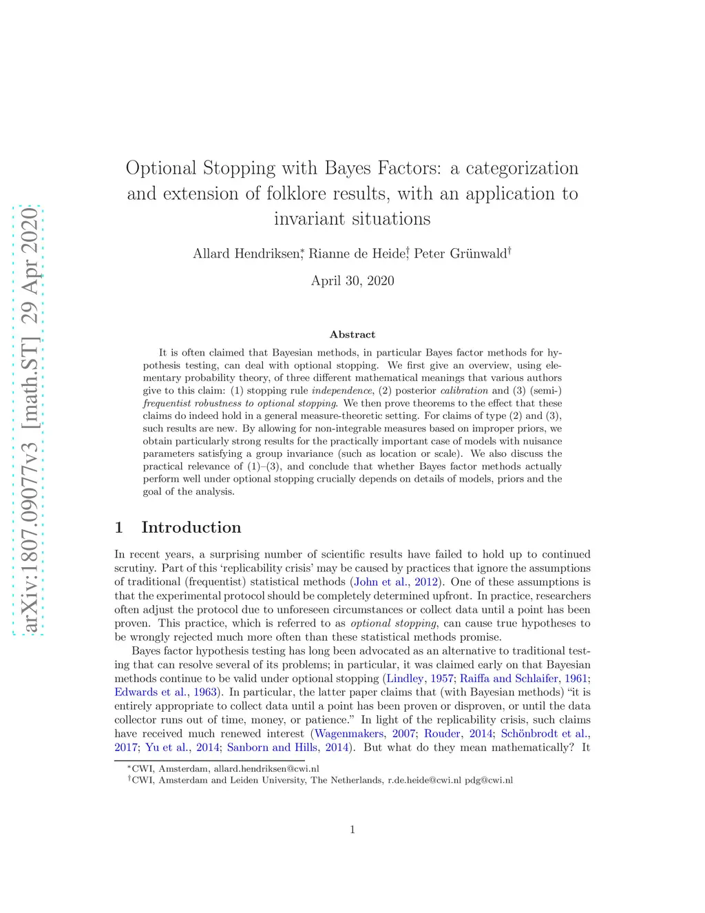 Optional Stopping with Bayes Factors: a categorization and extension of