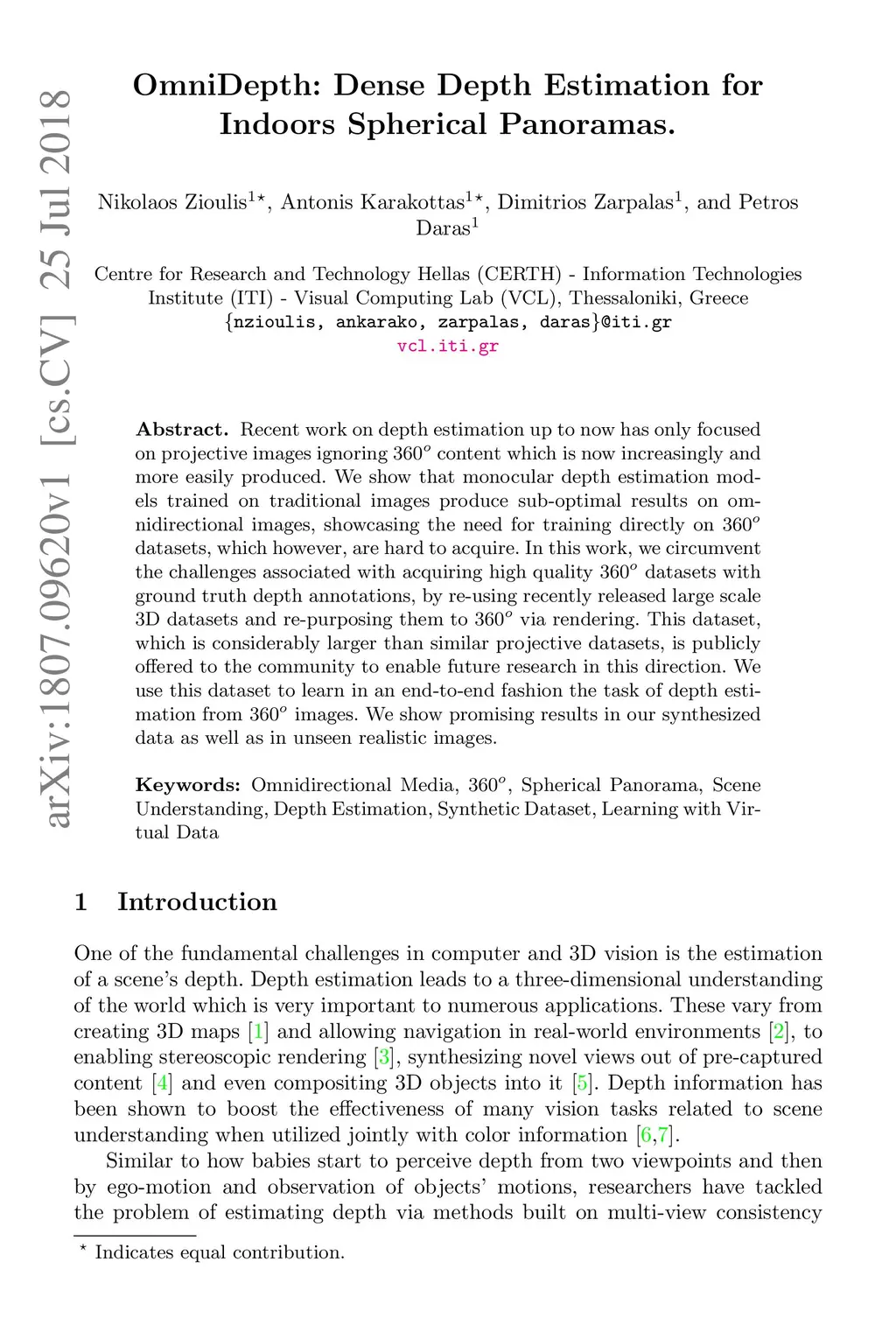 OmniDepth: Dense Depth Estimation for Indoors Spherical Panoramas