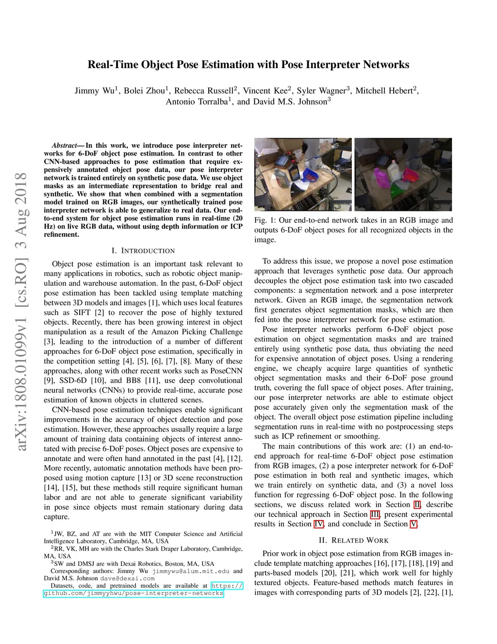 Real-Time Object Pose Estimation with Pose Interpreter Networks