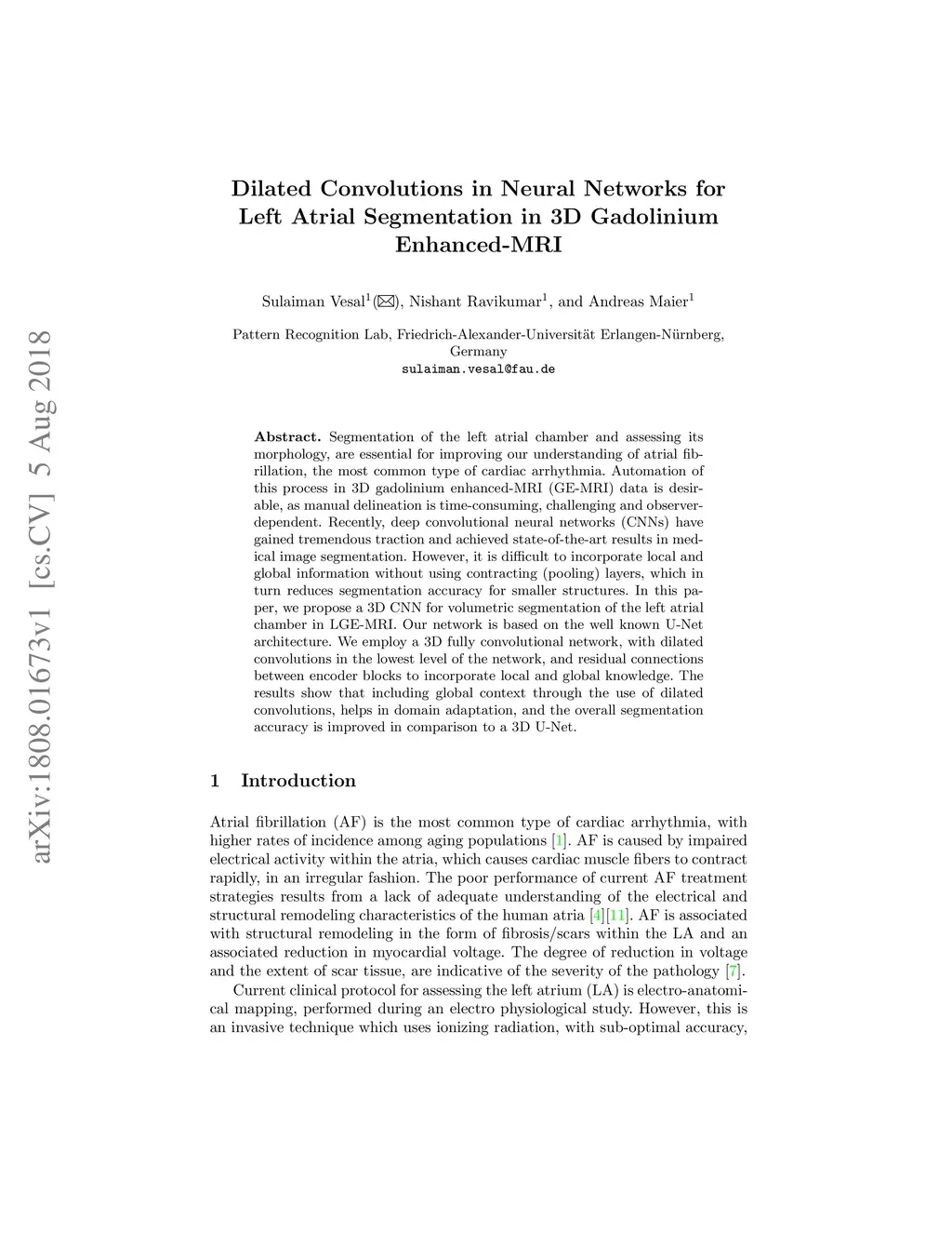 Dilated Convolutions in Neural Networks for Left Atrial Segmentation in