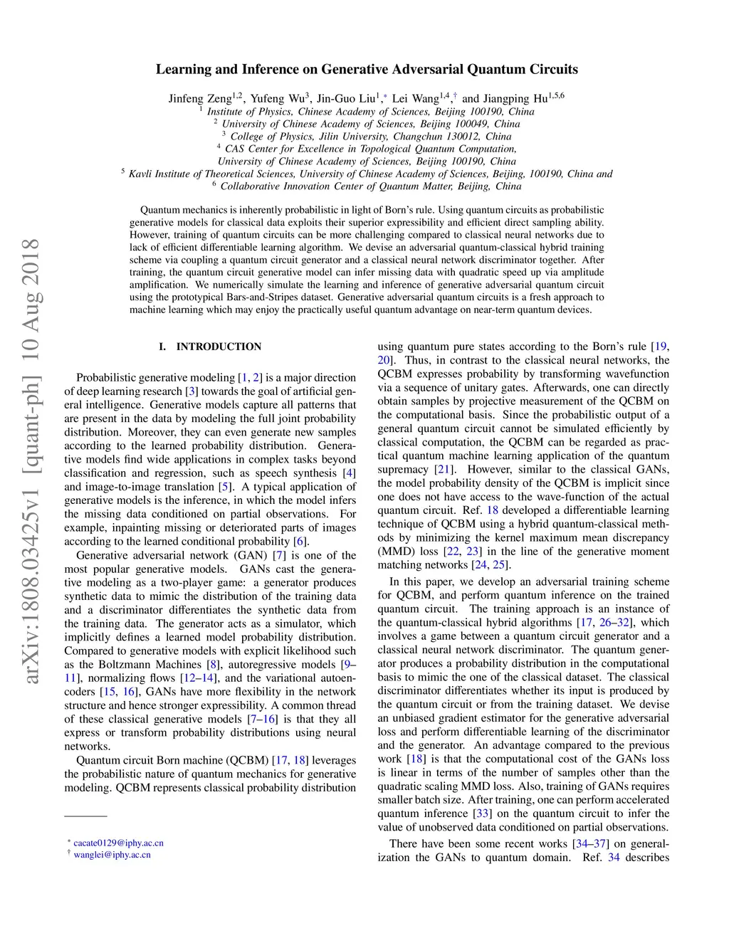 Learning and Inference on Generative Adversarial Quantum Circuits