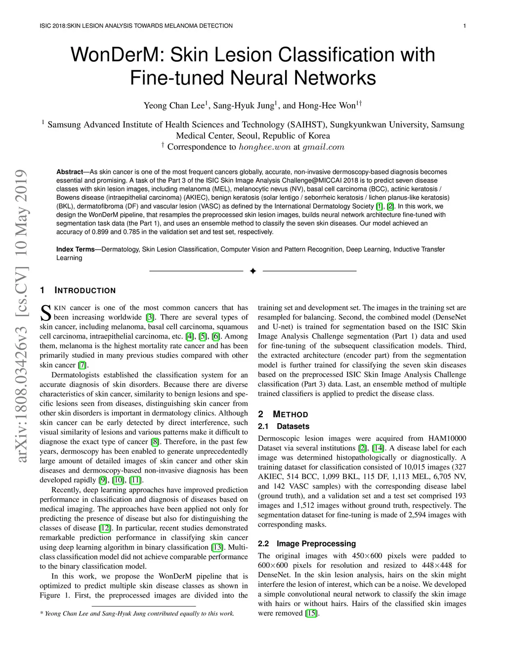 WonDerM: Skin Lesion Classification with Fine-tuned Neural Networks