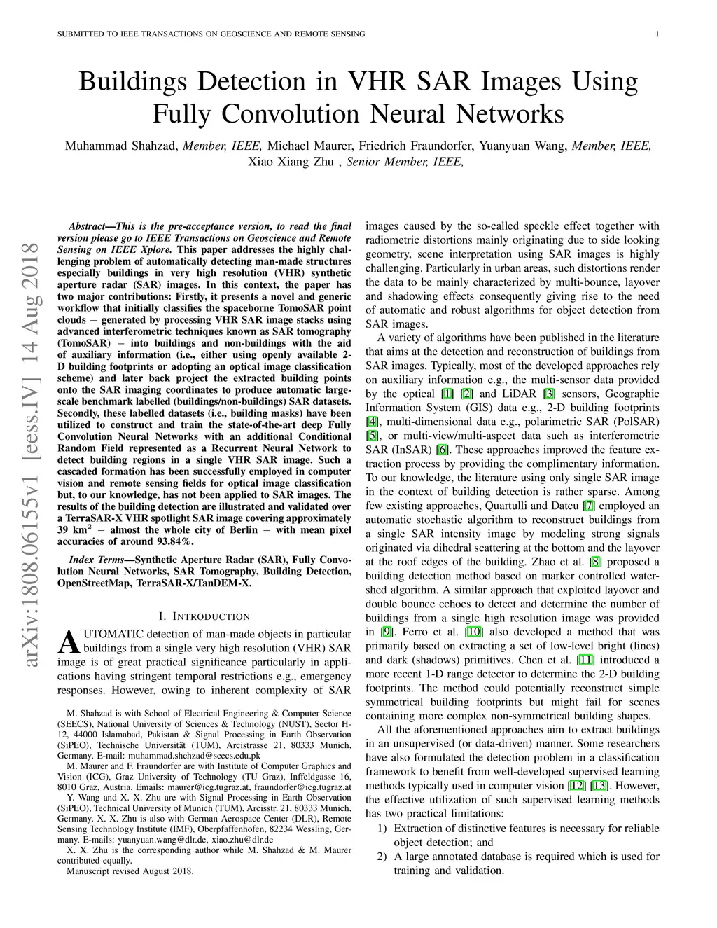 Buildings Detection in VHR SAR Images Using Fully Convolution Neural