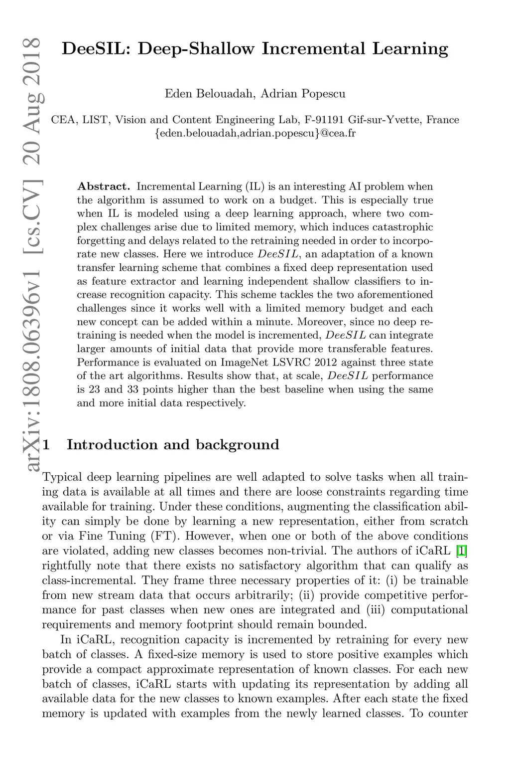 DeeSIL: Deep-Shallow Incremental Learning